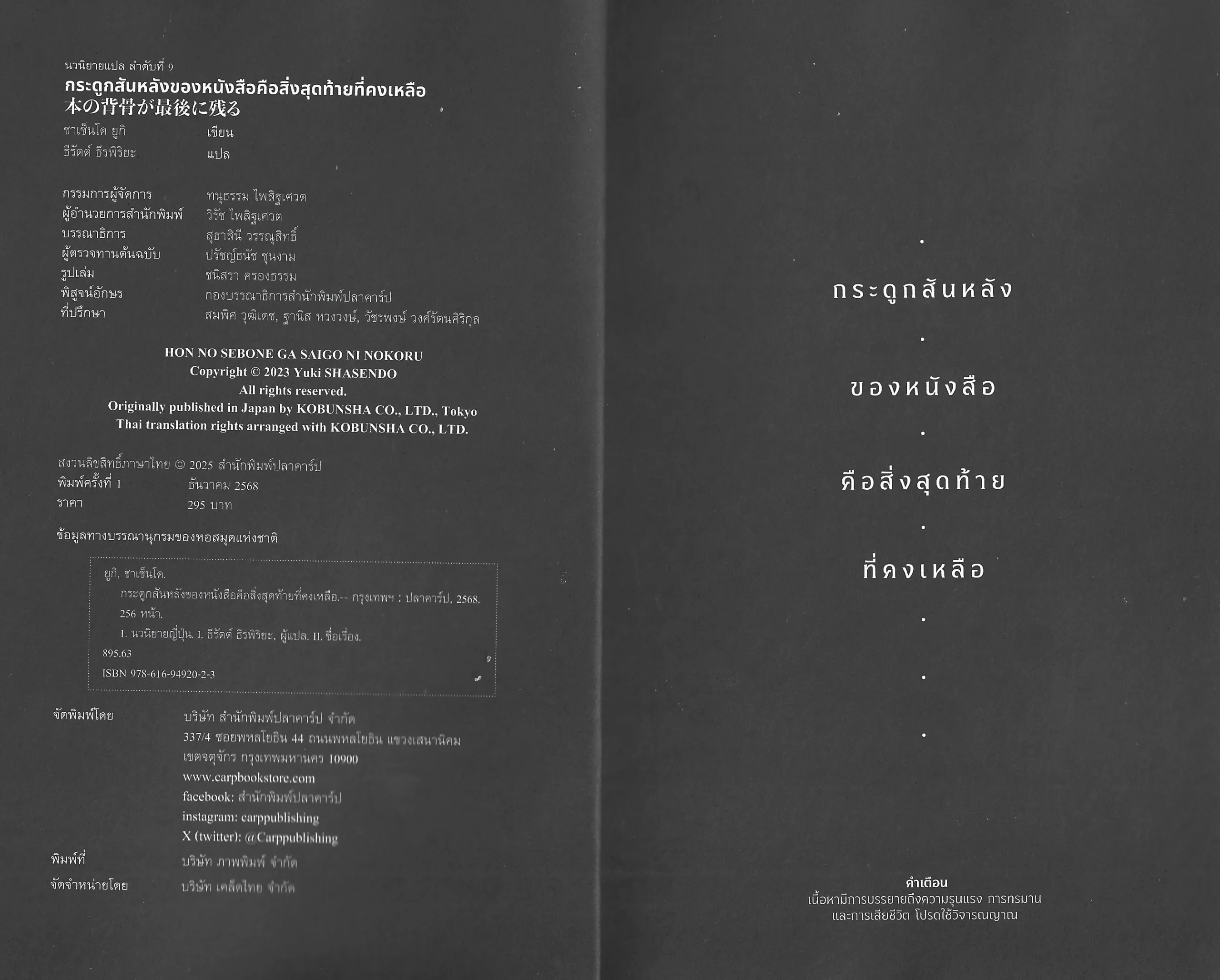 กระดูกสันหลังของหนังสือคือสิ่งสุดท้ายที่คงเหลือ – Shasendo Yuki / ธีรัตต์ ธีรพิริยะ
