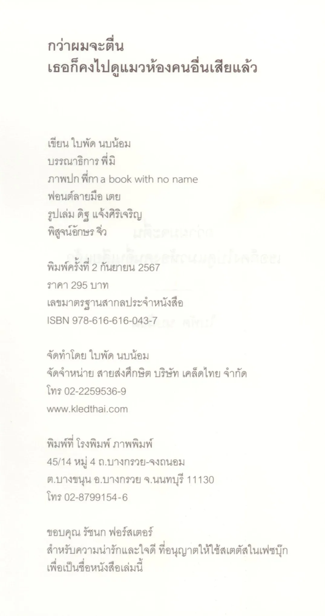 กว่าผมจะตื่น เธอก็คงไปดูแมวห้องคนอื่นเสียแล้ว / ใบพัด นบน้อม (ปกแดง)
