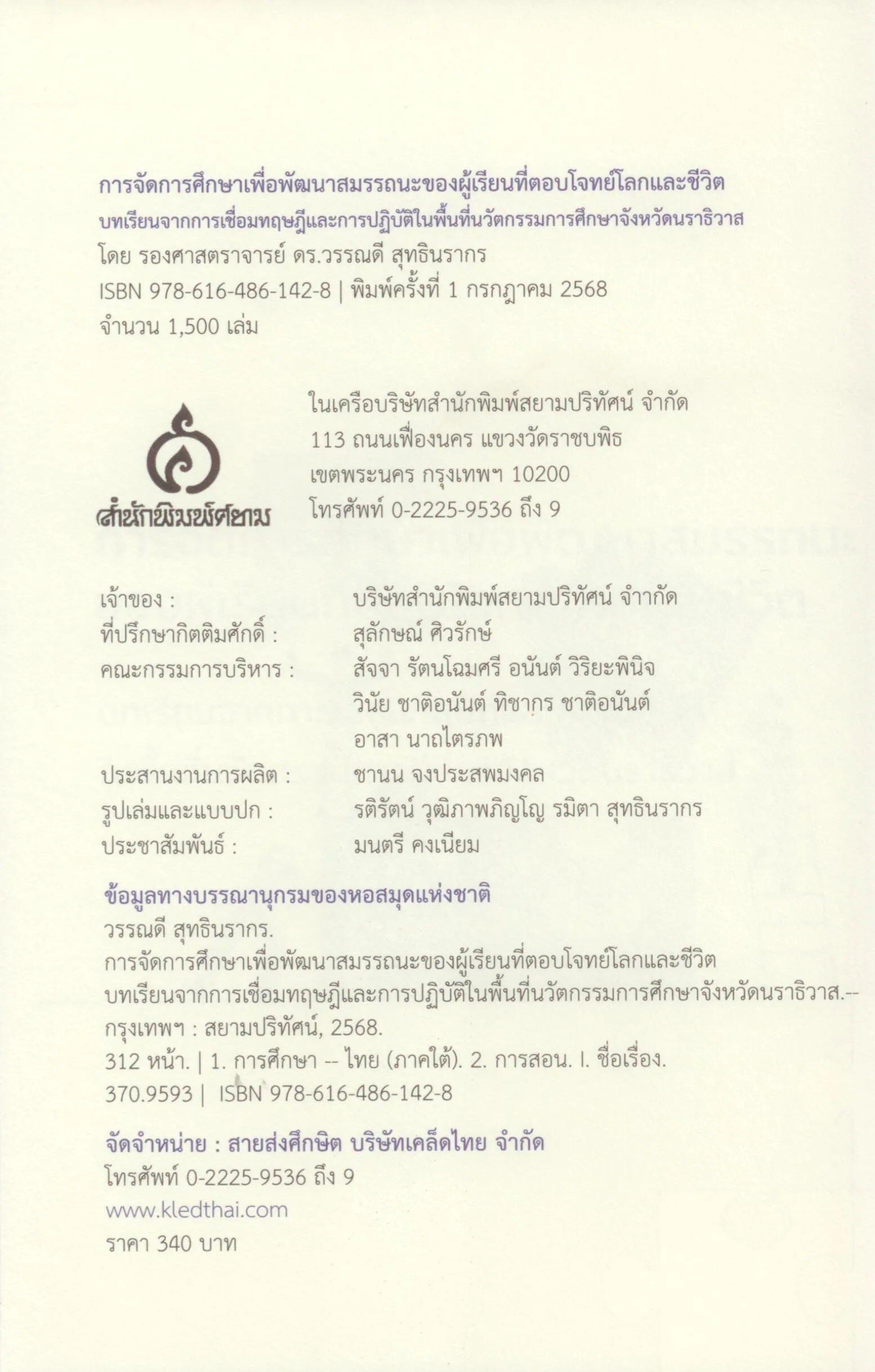 สำนักพิมพ์ศยาม พิมพ์ครั้งที่ 1 กรกฎาคม 2568