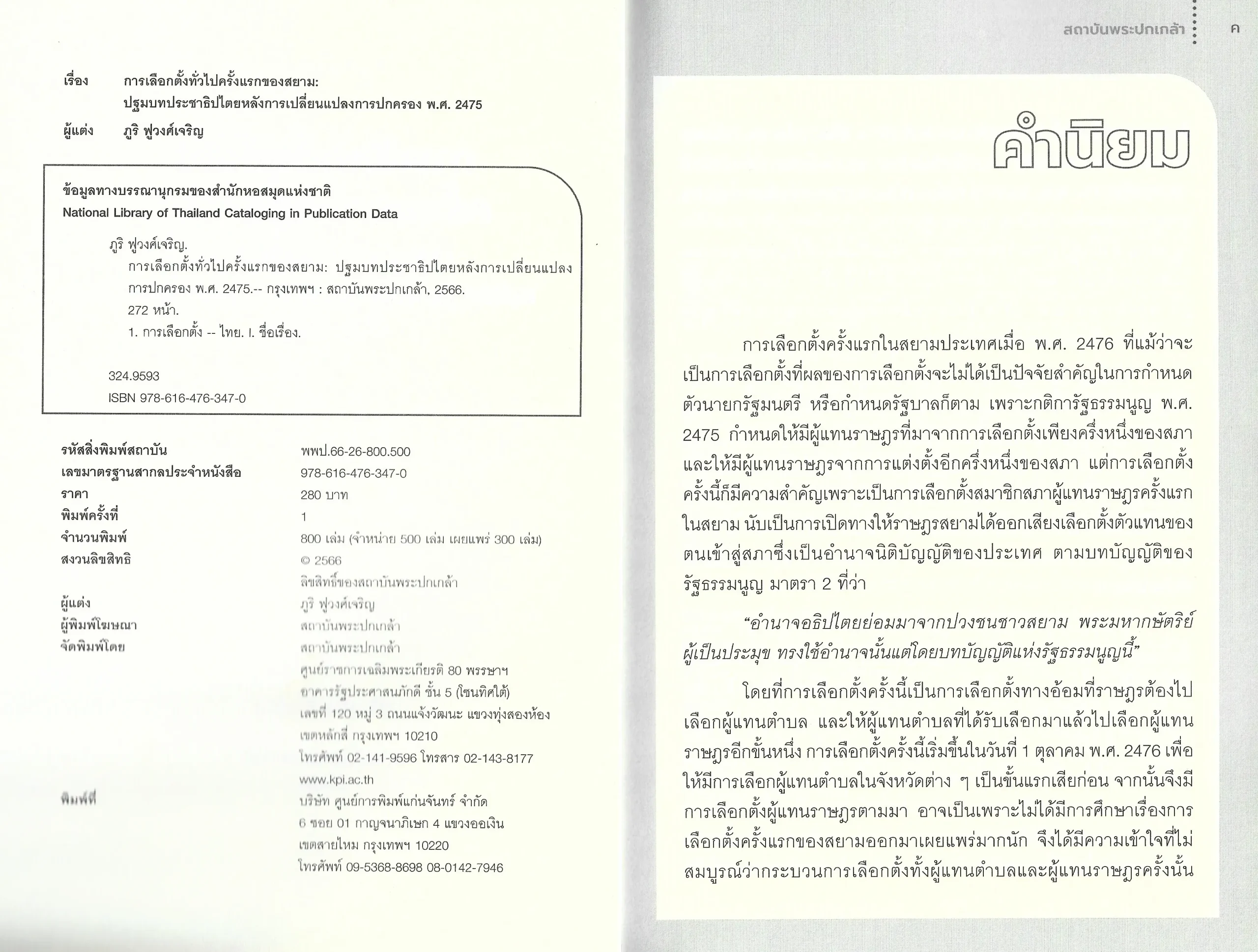 จัดพิมพ์โดย สถาบันพระปกเกล้า
