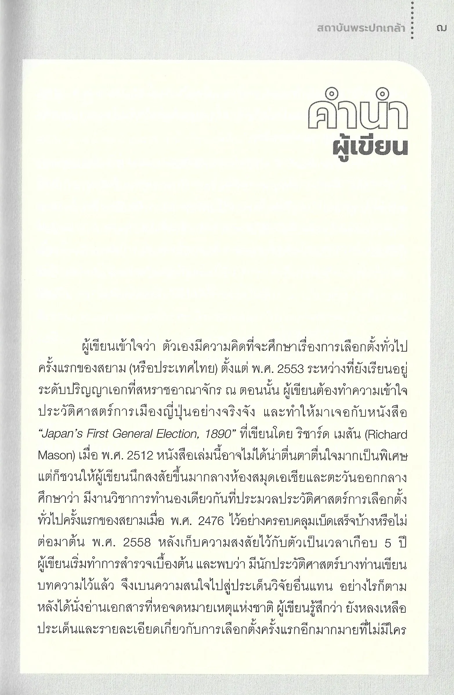 ผู้เขียนได้พยายามไปค้นจากแหล่งข้อมูลชั้นต้นมานำเสนอ ทำให้เชื่อได้ว่า ผู้สนใจจะรับประโยชน์จากหนังสือเล่มนี้ ยังมีอีกหลายตอนที่น่าขบคิดและเปิดหน้าประวัติศาสตร์ของการเลือกตั้งครั้งแรกของสยามมากกว่าที่เคยมีคนไปเขียนมา