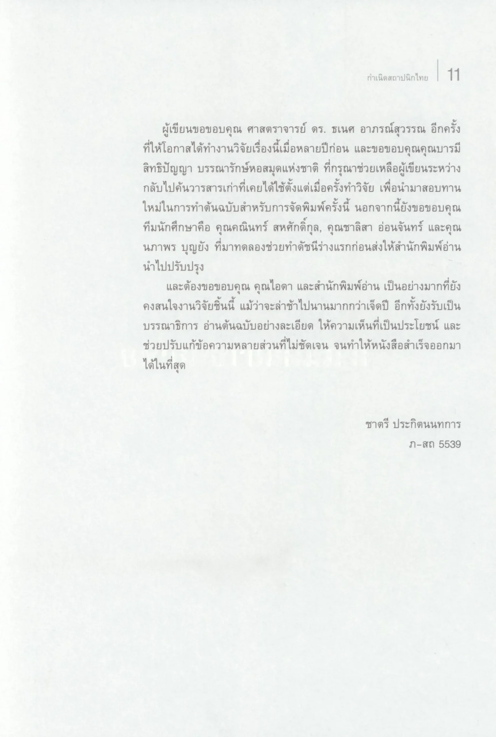 และต้องขอขอบคุณ คุณไอดา และสำนักพิมพ์อ่าน เป็นอย่างมากที่ยังคงสนใจงานวิจัยชิ้นนี้ แม้ว่าจะล่าช้าไปนานมากกว่าเจ็ดปี อีกทั้งยังรับเป็นบรรณาธิการ อ่านต้นฉบับอย่างละเอียด ให้ความเห็นที่เป็นประโยชน์ และช่วยปรับแก้ข้อความหลายส่วนที่ไม่ชัดเจน จนทำให้หนังสือสำเร็จออกมาได้ในที่สุด