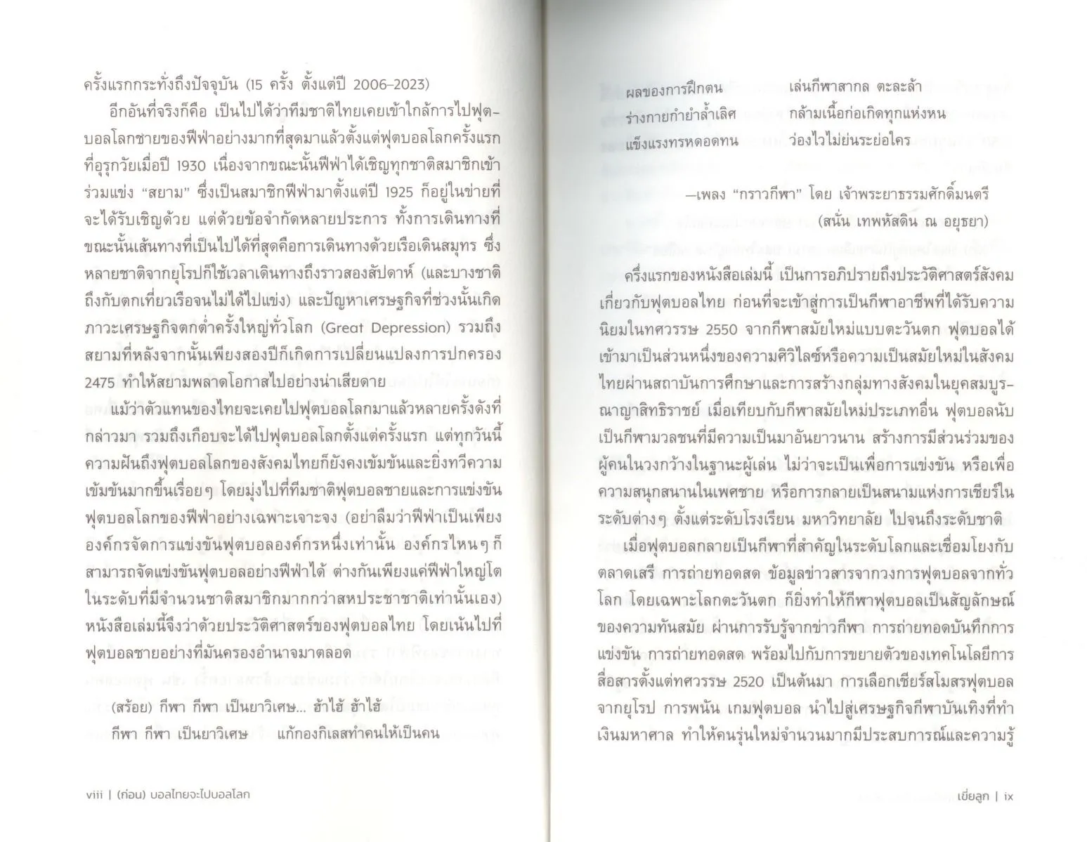 แม้ว่าตัวแทนของไทยจะเคยไปฟุตบอลโลกมาแล้วหลายครั้งดังที่กล่าวมา รวมถึงเกือบจะได้ไปฟุตบอลโลกตั้งแต่ครั้งแรก แต่ทุกวันนี้ความฝันถึงฟุตบอลโลกของสังคมไทยก็ยังคงเข้มข้นและยิ่งทวีความเข้มข้นมากขึ้นเรื่อยๆ โดยมุ่งไปที่ทีมชาติฟุตบอลชายและการแข่งขันฟุตบอลโลกของฟีฟ่าอย่างเฉพาะเจาะจง หนังสือเล่มนี้จึงจะว่าด้วยประวัติศาสตร์ของฟุตบอลไทย โดยเน้นไปที่ฟุตบอลชายอย่างที่มันครองอำนาจมาตลอด .