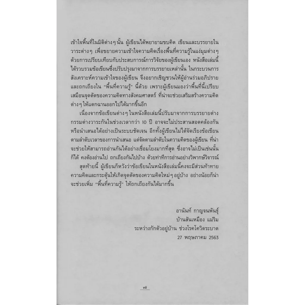 ในช่วงกว่า 10 ปีที่ผ่านมา ผู้เขียนจึงได้ค่อยๆ หันเหความสนใจมาสู่แนวความคิดเรื่องพื้นที่เพิ่มขึ้น ในความพยายามแสวงหาแนวทางในการวิเคราะห์ความสัมพันธ์เชิงอำนาจที่ซับซ้อนและเปลี่ยนแปลงอย่างรวดเร็วมากขึ้นในปัจจุบัน ต่อมาก็เริ่มเอนเอียงมาสู่ทิศทางที่มองว่า พื้นที่นั้นเป็นพื้นที่ของความสัมพันธ์เชิงอำนาจที่ขัดแย้งกันของความรู้ชุดต่างๆ ผู้เขียนขอเรียกสั้นๆ ว่า “พื้นที่ความรู้” ด้วยการบูรณาการแนวความคิดต่างๆ จากประสบการณ์ในการเรียนรู้ของผู้เขียน