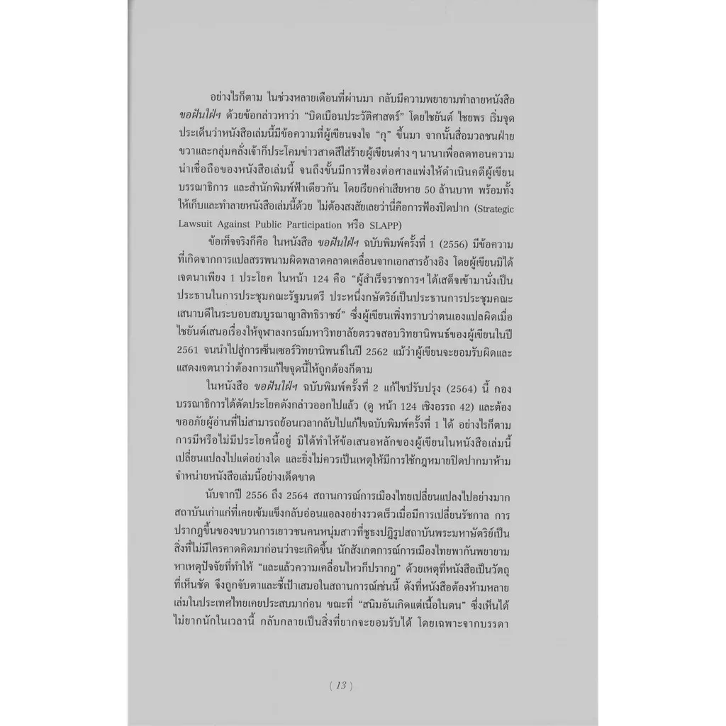 ในการตีพิมพ์ครั้งนี้ (2564) กองบรรณาธิการได้แก้ไขตามที่ท้วงติงแล้ว ซึ่งมีเพียงจุดเดียว (หน้า 124) อย่างไรก็ตาม สำนักพิมพ์ฟ้าเดียวกันขอยืนยันว่าความผิดพลาดดังกล่าวมิได้เกิดขึ้นโดยเจตนา และไม่ได้กระทบต่อโครงเรื่องและสาระหลักในหนังสือเล่มนี้แต่อย่างใด