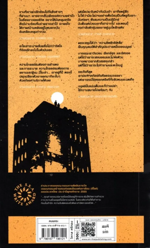 “คนแคระ” ของ วิภาส ศรีทอง เป็นนวนิยายที่เสนอปัญหาสัมพันธภาพระหว่างมนุษย์ เปิดเผยให้เห็นความโดดเดี่ยวอ้างว้าง ของกลุ่มคนซึ่งเป็นตัวแทนของสังคมร่วมสมัย โดยสะท้อนให้เห็นการขาดความตระหนักถึงคุณค่าของความเป็นมนุษย์ การหมกมุ่นอยู่กับปัญหาของตนเอง และการโหยหาสัมพันธภาพระหว่างมนุษย์ แต่จำกัดขอบเขตของความสัมพันธ์นั้นไว้ ทั้งหมดนี้ผู้เขียนนำเสนอผ่านตัวละครที่แสดงความเย็นชาต่อชะตากรรมของมนุษย์และหาทางสร้างความชอบธรรมให้แก่การกระทำของตนเองและนี่คือนวนิยายซีไรต์ประจำปี 2555 ที่คุณควรได้อ่านเป็นอย่างยิ่ง