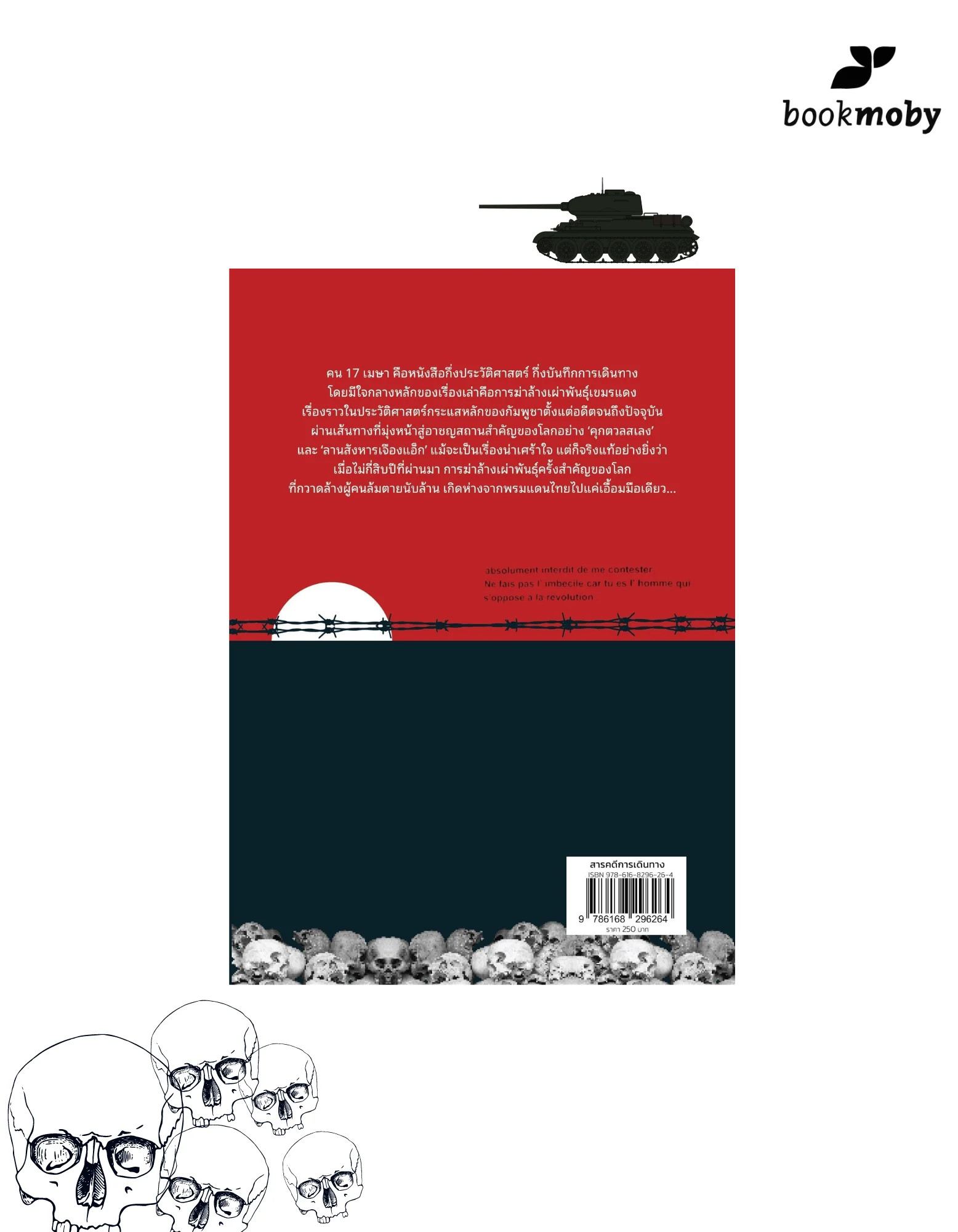 คน 17 เมษา คือหนังสือกึ่งประวัติศาสตร์ กึ่งบันทึกการเดินทาง โดยมีใจกลางหลักของเรื่องเล่าคือการฆ่าล้างเผ่าพันธุ์เขมรแดง เรื่องราวในประวัติศาสตร์กระแสหลักของกัมพูชาตั้งแต่อดีตจนถึงปัจจุบัน ผ่านเส้นทางที่มุ่งหน้าสู่อาชญสถานสำคัญของโลกอย่าง ‘คุกตวลสเลง’ และ ‘ลานสังหารเจืองแอ็ก’ แม้จะเป็นเรื่องน่าเศร้าใจ แต่ก็จริงแท้อย่างที่ว่า