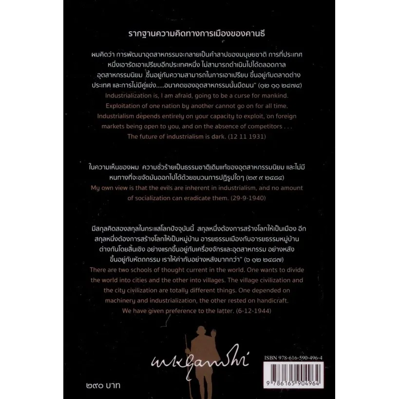 “มหาตมะคานธี” ก็เช่นเดียวกับนักคิดที่ยิ่งใหญ่ของโลกคนอื่น ๆ ที่งานคิดงานเขียนของท่านเหล่านั้น มีทั้งส่วนที่เป็นเรื่องเฉพาะเจาะจงในบริบทของสังคมที่ตนอาศัยอยู่ และมีทั้งส่วนที่เป็นสากล ข้ามพ้นกาลเวลา งานเขียนทั้งหมดในเล่มนี้ แม้จะเขียนขึ้นก่อนอุตสาหกรรมนิยม และการอยู่ในสังคมเมืองจะขยายตัวอย่างกว้างขวาง ดังที่เราเห็นกันอยู่ในปัจจุบัน แต่สิ่งหนึ่งที่ไม่เคยเปลี่ยนแปลงเลยก็คือมนุษย์ต้องการอยู่หมู่บ้านเสมอ แม้จะอยู่ในอภิมหานครขนาดไหนก็ตาม เล่มนี้นำเสนอความคิดทางการเมือง นอกกระแสหลักตะวันตก