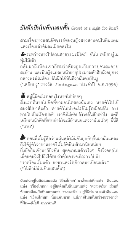 ผลงานเขียนของผู้เขียน ผู้คนแถวบ้าน และ บันทึกฝันในคืนแสนสั้น