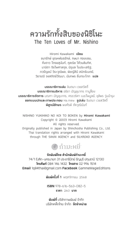 ความรักทั้งสิบของนิชิโนะ (The Ten Loves of Mr. Nishino) – Hiromi Kawakami / ทีม 10 นักแปลหญิง
