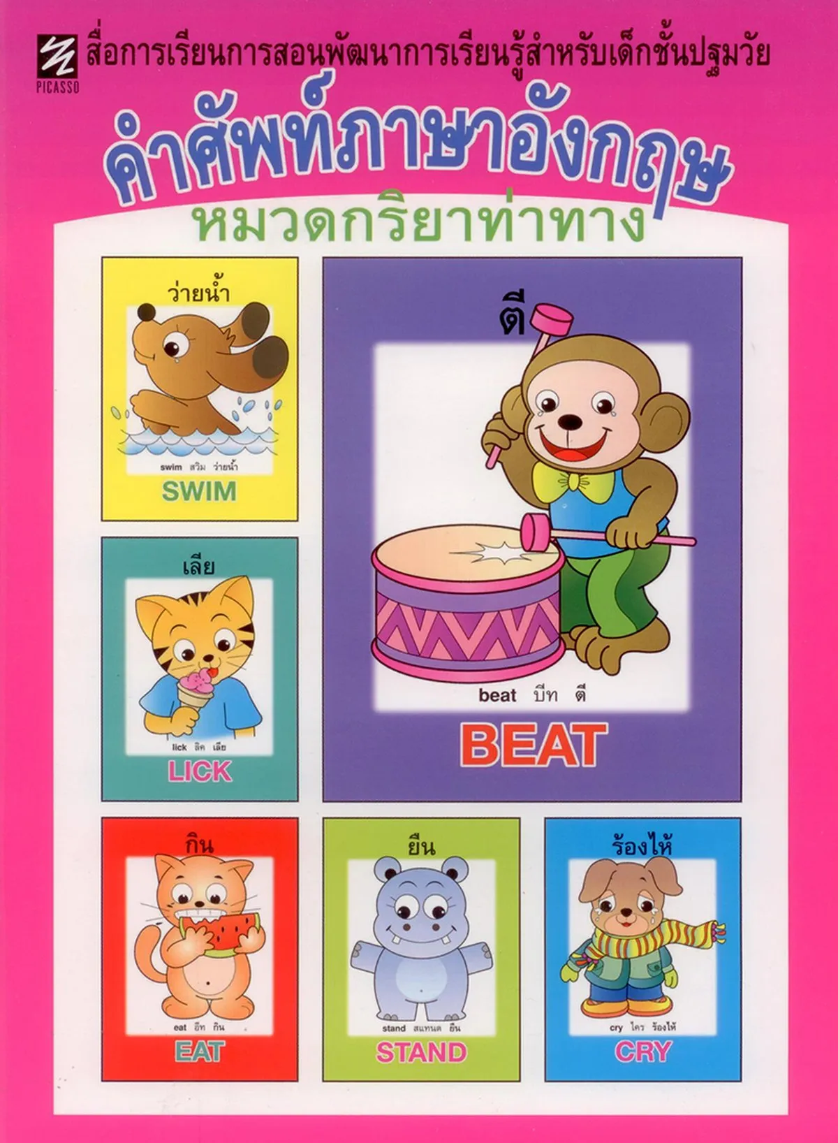 สื่อการเรียนการสอนพัฒนาการเรียนรู้สำหรับเด็กชั้นปฐมวัย คำศัพท์ภาษาอังกฤษ หมวดกริยาท่าทาง (พร้อมภาพสีสวยงาม)