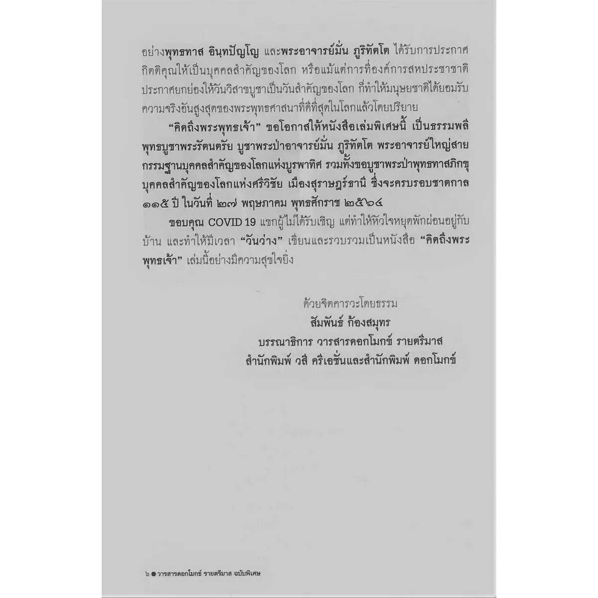 คิดถึงพระพุทธเจ้า : วารสารดอกโมกข์ รายตรีมาส ฉบับพิเศษ