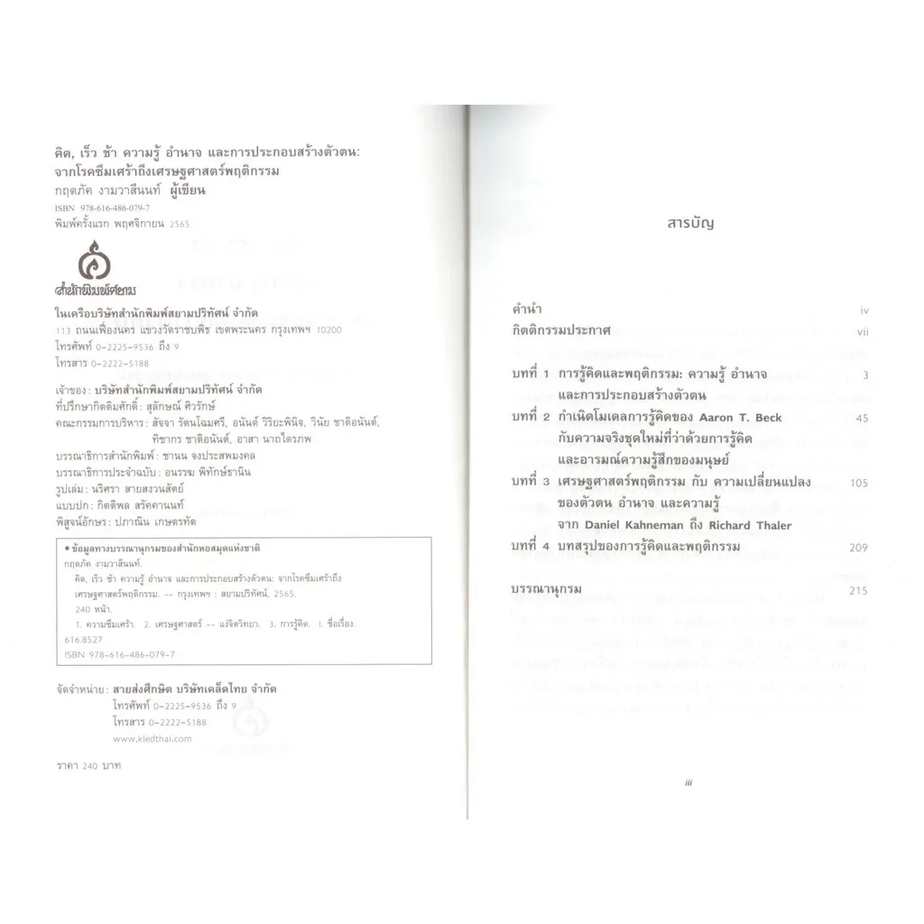 หนังสือที่ทุกท่านถืออยู่ในมือเล่มนี้ได้ทำความเข้าใจ ความเปลี่ยนแปลงของความรู้สองชุดที่มีความสำคัญอย่างยิ่ง ในการทำความเข้าใจมนุษย์ในโลกสมัยใหม่ ความรู้ชุดแรก ได้แก่ การบำบัดทางความคิดและพฤติกรรม (cognitive behavioral therapy) หรือ CBT กับความรู้อีกชุดหนึ่งได้แก่ เศรษฐศาสตร์พฤติกรรม (behavioral economics) โดยความรู้ทั้งสองชุดมีส่วนสัมพันธ์กับการปรากฏตัวขึ้นมาของความรู้และความจริงชุดใหม่ที่ว่าด้วย “การรู้คิดและพฤติกรรมของมนุษย์”