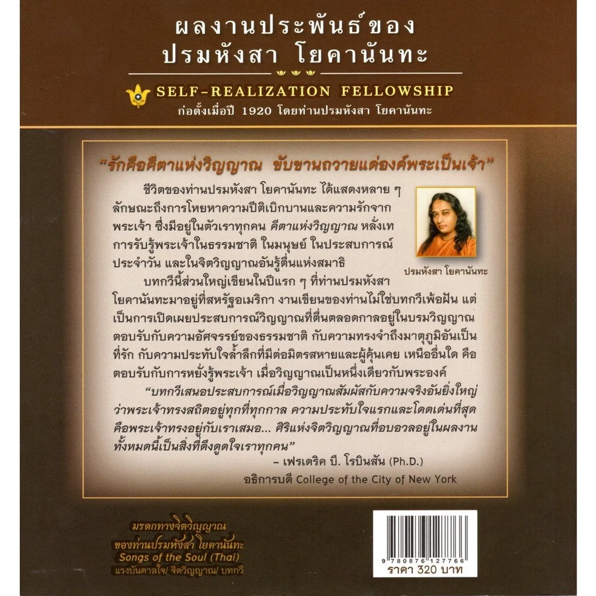 ชีวิตของท่านปรมหังสา โยคานันทะ ได้แสดงลักษณะถึงการโหยหาความปิติเบิกบานและความรักจากพระเจ้า ซึ่งมีอยู่ในตัวเราทุกคน คีตาแห่งวิญญาณ หลั่งเท การรับพระเจ้าในธรรมชาติ ในมนุษย์ ในประสบการณ์ประจำวัน และในจิตวิญญาณอันรู้ตื่นแห่งสมาธิ