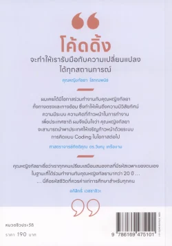 ดิฉันอยากให้หนังสือเล่มนี้เป็นแรงบันดาลใจให้กับทุกคน โดยเฉพาะเยาวชนไทย ได้เห็นว่า โค้ดดิ้งไม่ใช่เรื่องของอนาคตอีกต่อไป แต่มันคือทักษะของปัจจุบันที่เราทุกคนต้องมี เพื่อสร้างโอกาสที่ดีขึ้นให้กับตัวเอง และก้าวไปสู่อนาคตอย่างมั่นใจ