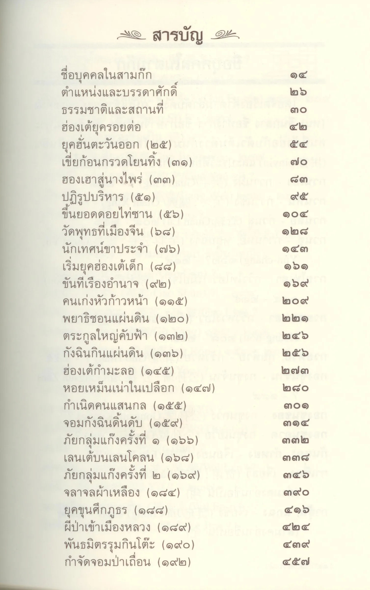 จากนั้นจึงมาถึงยุคสามก๊ก โดยผู้เขียนได้ค้นคว้าขุดคุ้ยหาความจริงของเหตุการณ์จริงสามก๊ก มาไล่เรียงให้เห็นกันอย่างละเอียดทุกซอกมุม จนกระทั่งราชวงศ์จิ้นแห่งก๊กเว่ย ได้รวบรวมสามก๊กให้แผ่นดินจีนเป็นหนึ่งเดียว และดำเนินเรื่อยมาตราบจนกระทั่งราชวงศ์จิ้นได้ล่มสลายลงใน ค.ศ.ที่ ๓๑๖ แผ่นดินจีนจึงได้แตกเป็นเสี่ยงๆ แยกเป็นก๊กเล็กก๊กน้อยมากมายอีกครั้งหนึ่ง