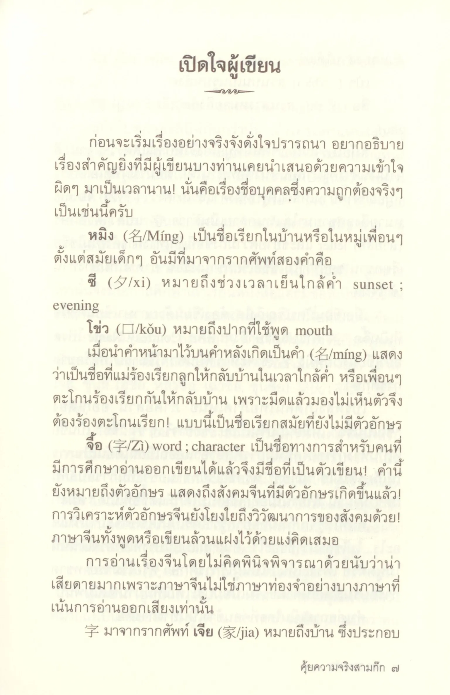“คุ้ยความจริงสามก๊ก” จึงเป็นการไล่เรียงเหตุการณ์ความจริงทางประวัติศาสตร์ ตั้งแต่ ยุคก่อนสามก๊ก ยุคสามก๊กและยุคหลังสามก๊ก นับแต่ ค.ศ.ที่ ๒๕ ถึง ค.ศ.ที่ ๓๑๖ รวมทั้งสิ้น ๒๙๑ ปี โดยเป็นเจตนาสูงสุดของผู้เขียนที่ประสงค์ให้ผู้อ่านได้เห็นภาพต้นเหตุแห่งการเกิดสามก๊ก ความจริงของเหตุการณ์สามก๊ก และไล่เรียงเรื่อยมาให้เห็น ผลอันเป็นบั้นปลายด้วยว่าหลังสามก๊กได้รวมเป็นหนึ่งเดียวแล้ว เหตุการณ์ดำเนินต่อไปอย่างไร เป็นการศึกษาสามก๊กอย่างมีที่มาและที่ไปมิใช่การอ่านรู้แต่เพียงเรื่องราวของสมัยสามก๊กเท่านั้น