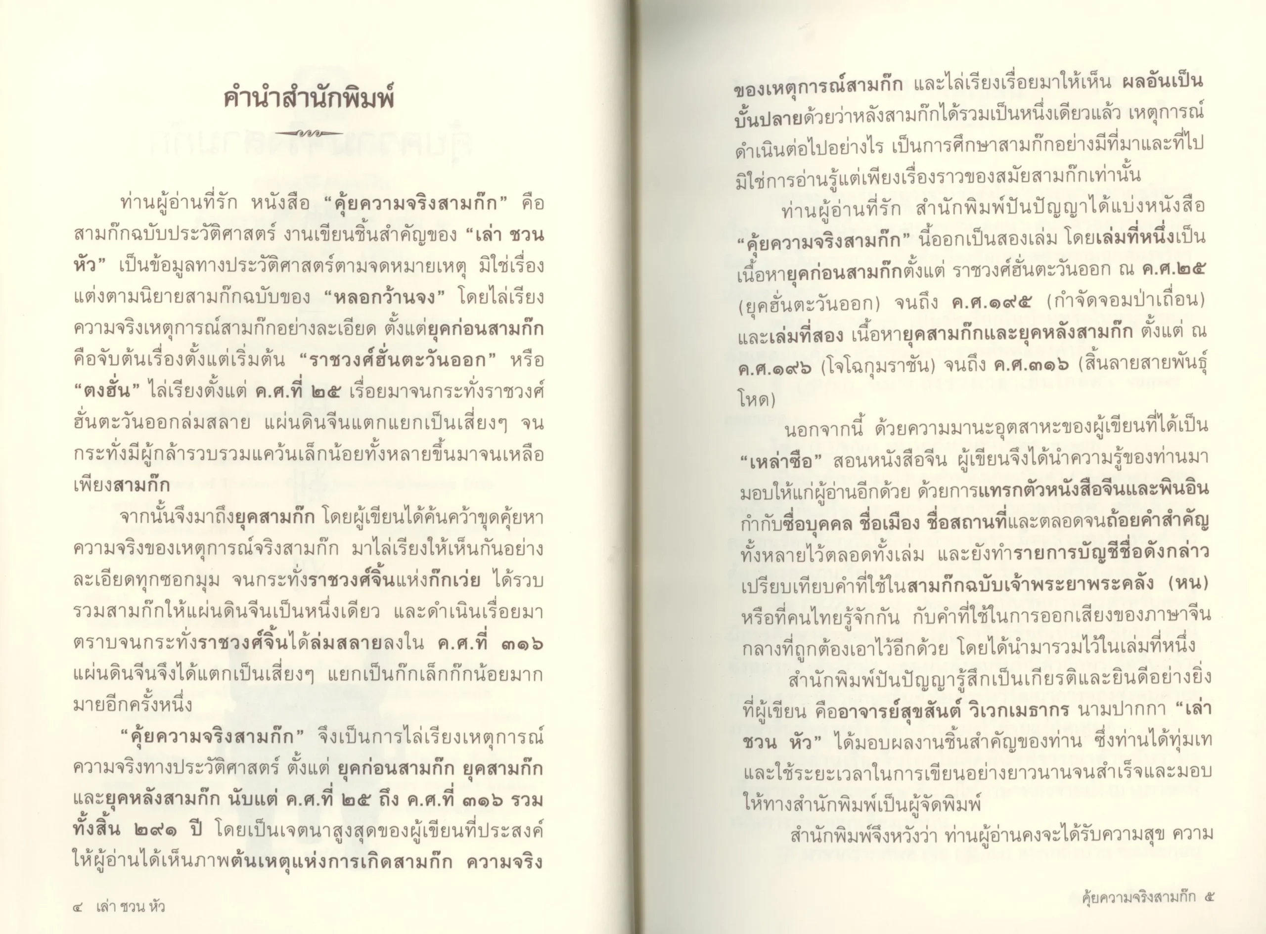 ไล่เรียงความจริง เหตุการณ์สามก๊กอย่างละเอียดตั้งแต่ ยุคก่อนสามก๊ก ยุคสามก๊ก และ ยุคหลังสามก๊ก ค.ศ. ๒๕ – ค.ศ. ๓๑๙ รวมทั้งสิ้น ๒๙๑ ปี
