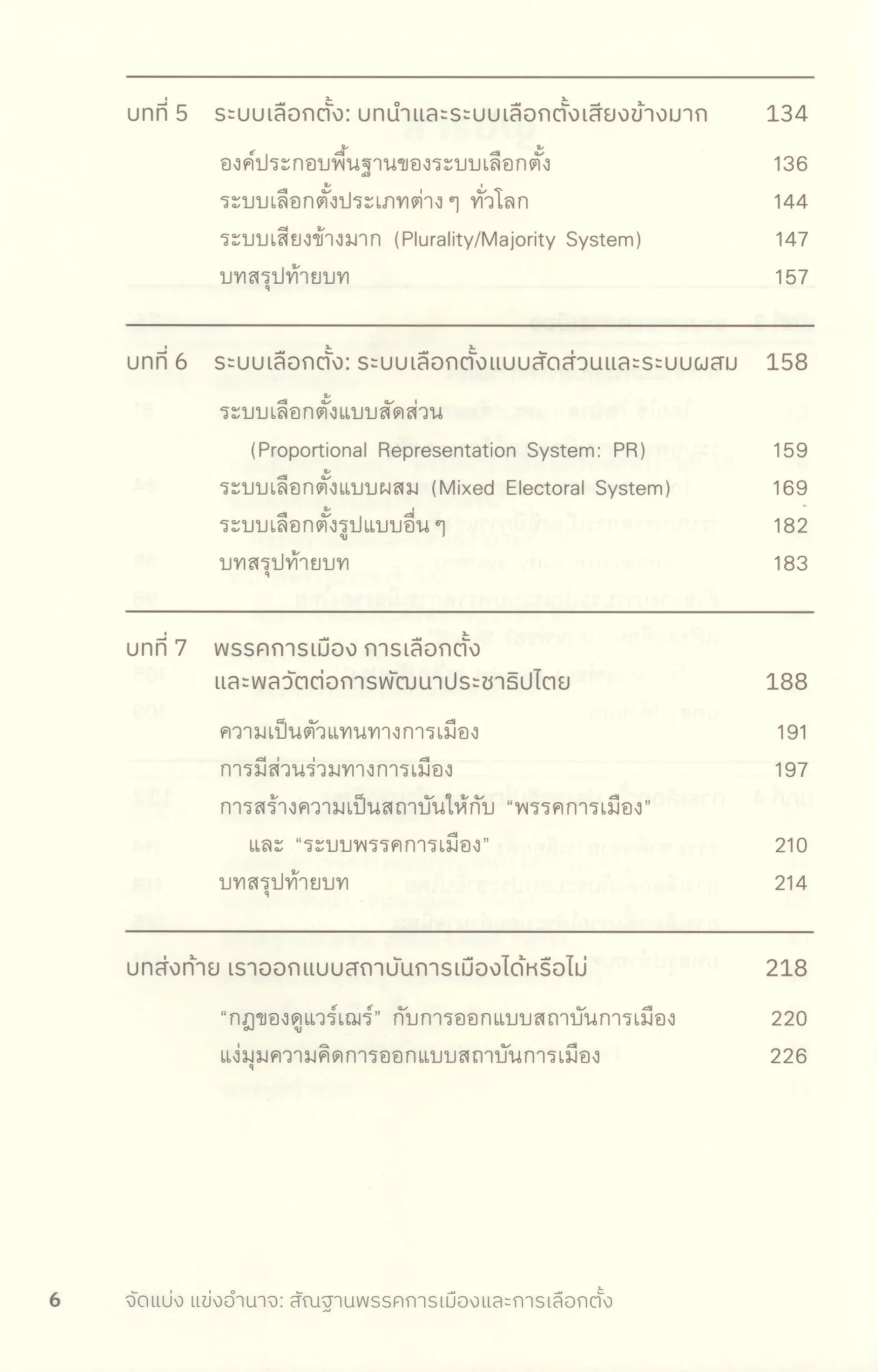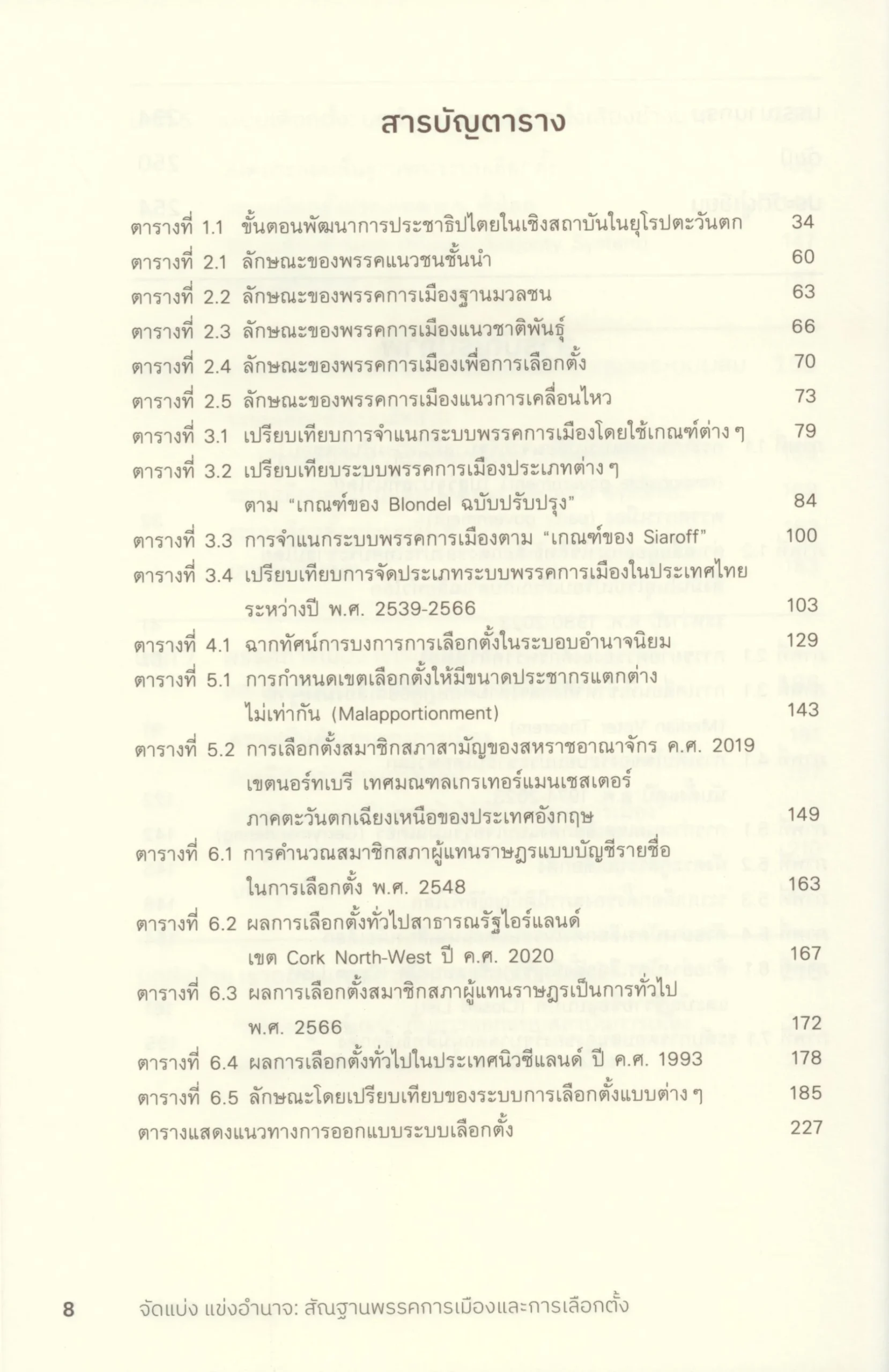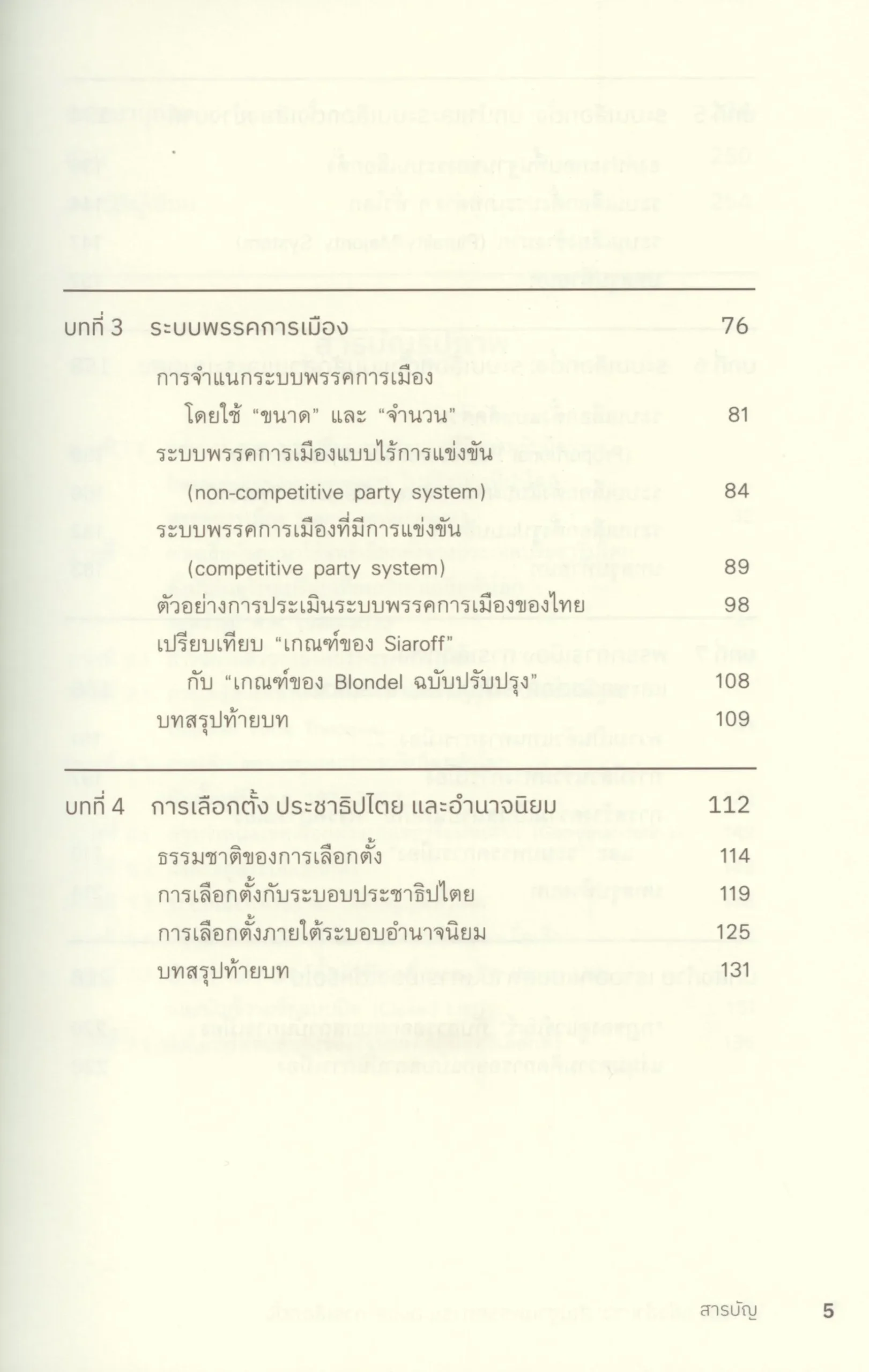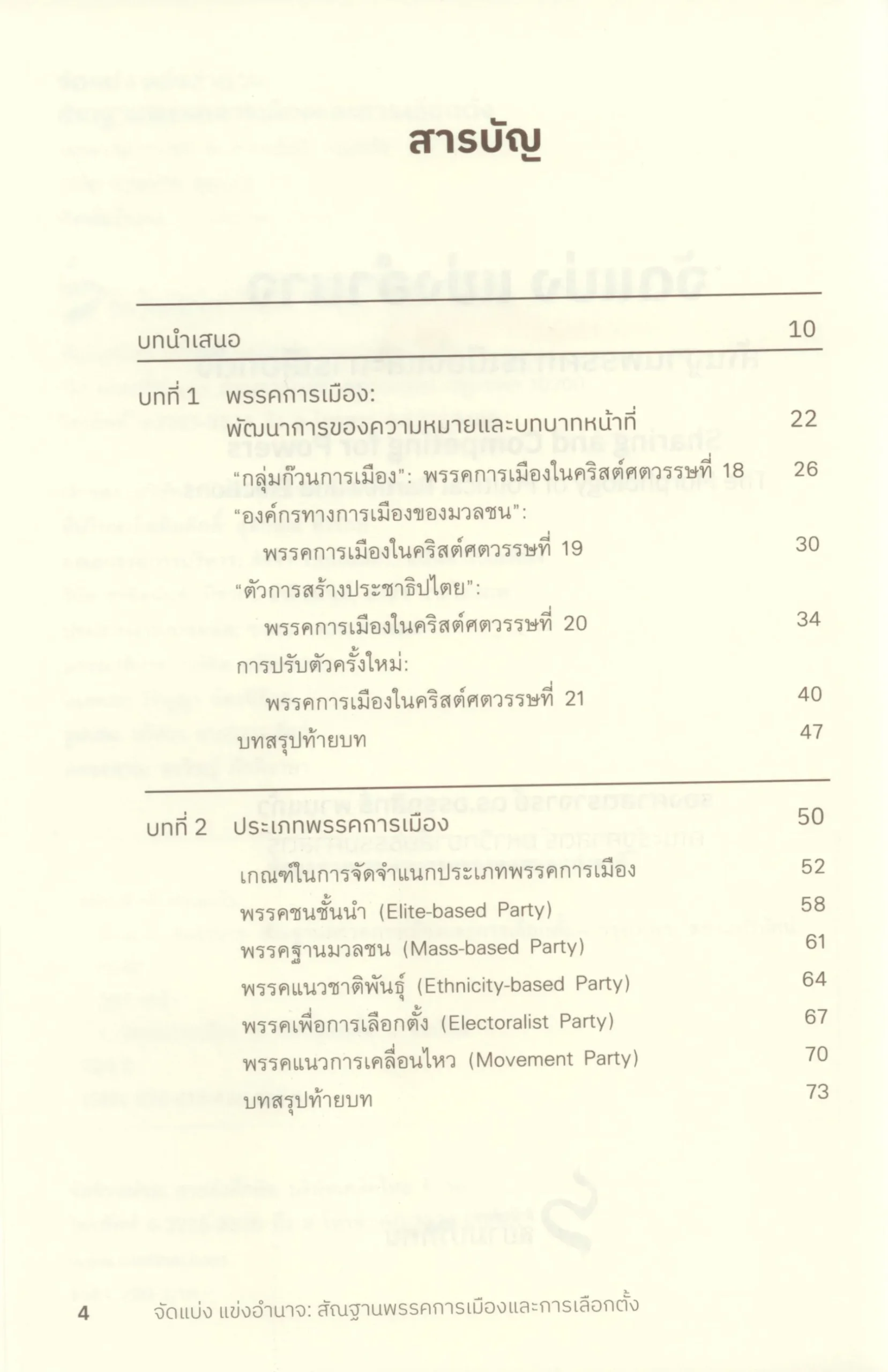 หนังสือเล่มนี้นำเสนอแนวคิดสำคัญเกี่ยวกับพรรคการเมืองและการเลือกตั้ง เพื่อเป็นกรอบแนวทางทำความเข้าใจเบื้องต้นและเป็นพื้นฐานในการศึกษาพรรคการเมืองและการเลือกตั้ง ผ่านหลักการแนวคิด ทฤษฎี และพัฒนาการโดยค้นคว้ารวบรวมจากเอกสารทางวิชาการรูปแบบต่าง ๆ