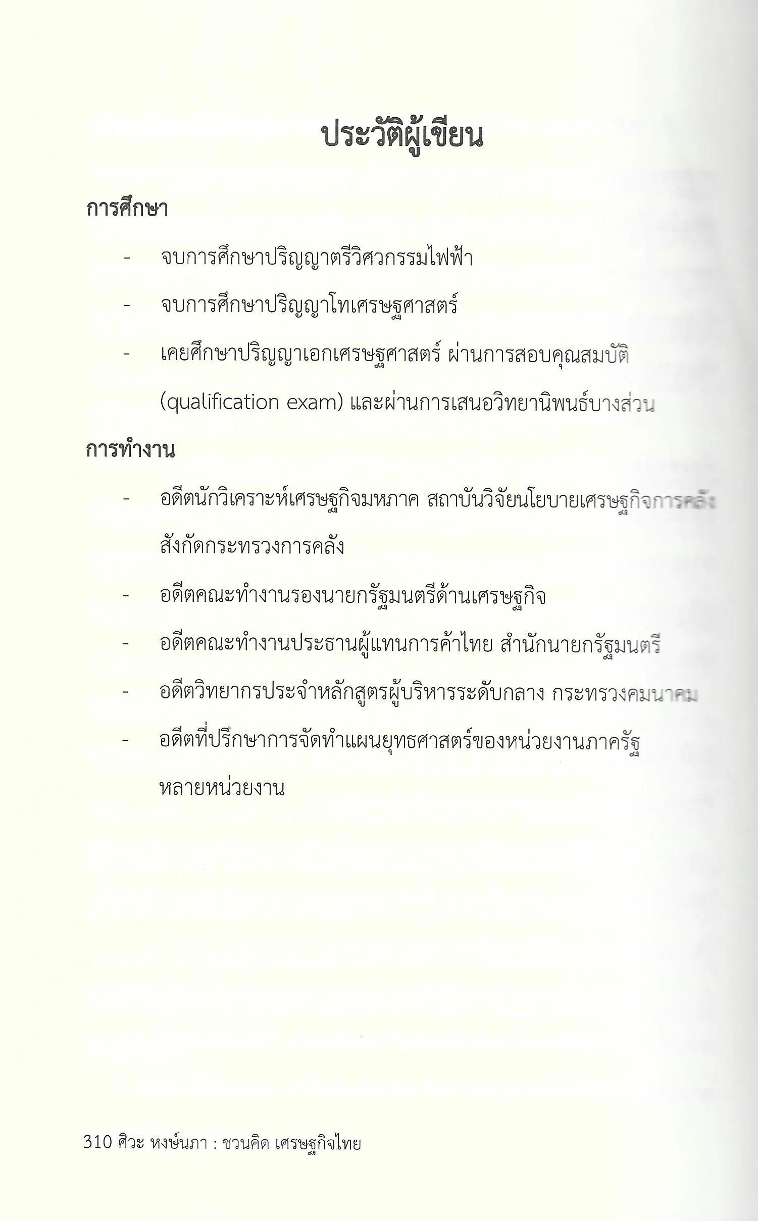 -อดีตนักวิเคราะห์เศรษฐกิจมหภาค สถาบันวิจัยนโยบายเศรษฐกิจการคลัง สังกัดกระทรวงการคลัง