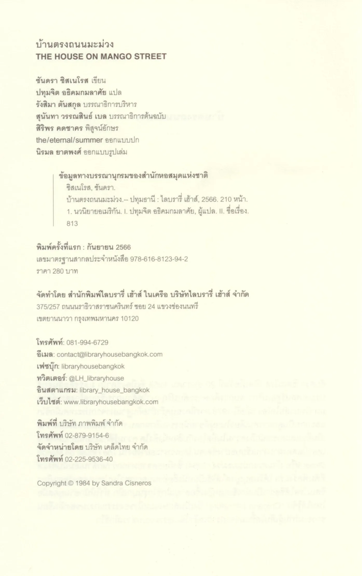 บ้านตรงถนนมะม่วง (The House on Mango Street)
