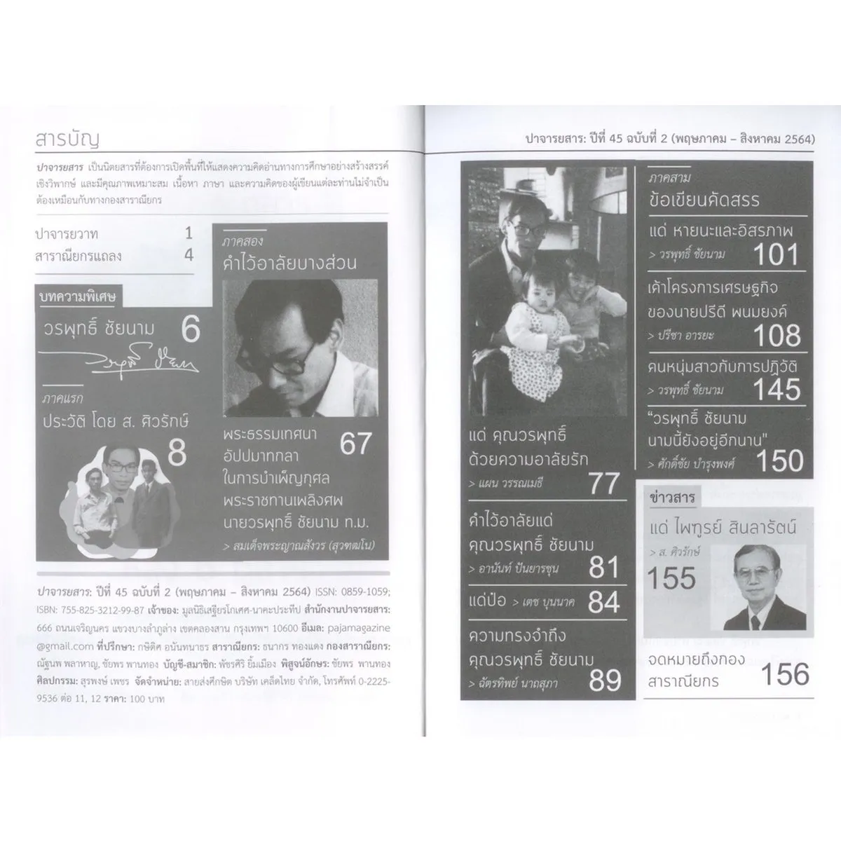 ปาจารยสาร ปีที่ 45 ฉบับที่ 2 (พฤษภาคม – สิงหาคม 2564) ชีวิต และความคิดของวรพุทธิ์ ชัยนาม