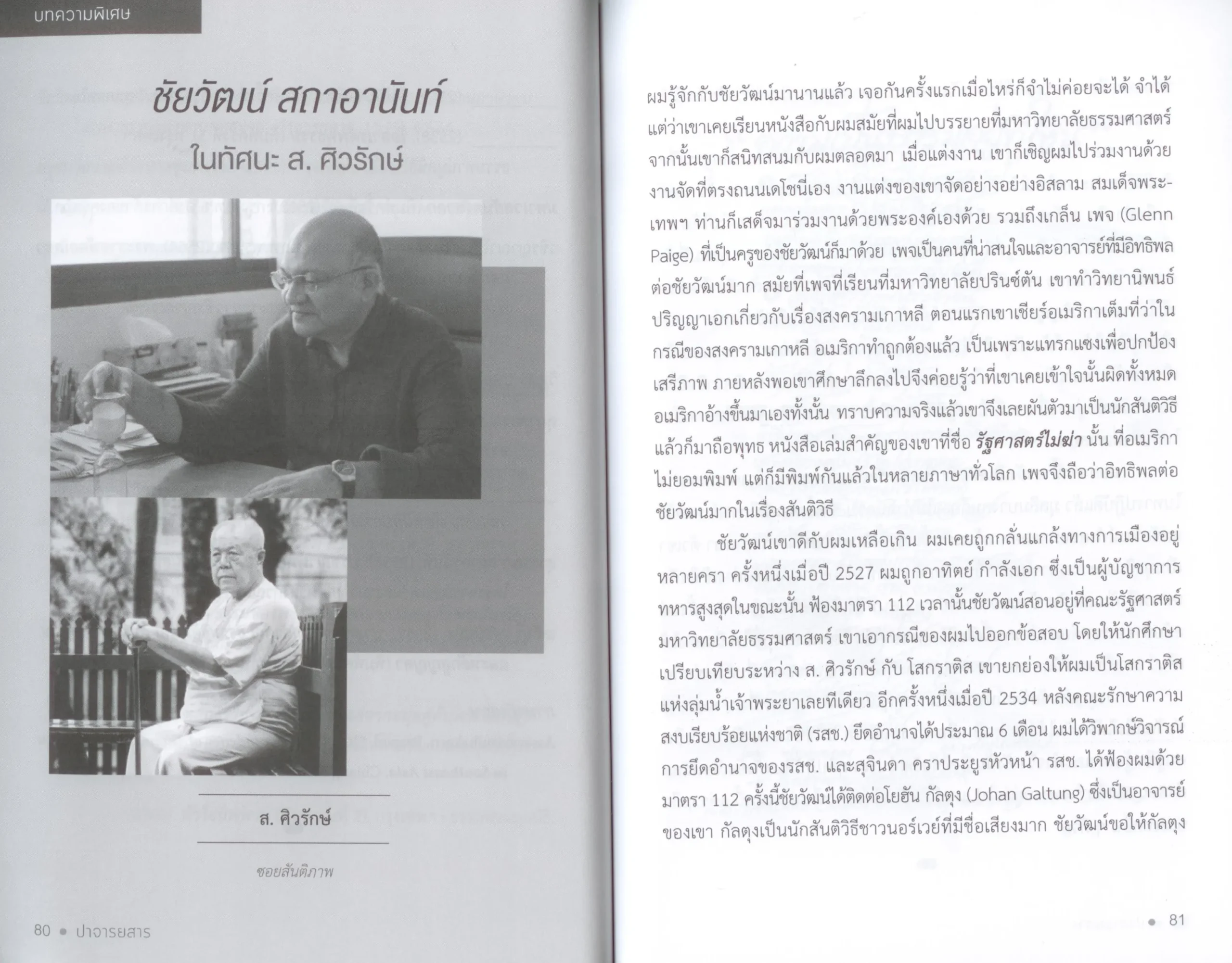 บทความอาจารย์ชัยวัฒน์ สถาอานันท์ ปาจารยสารปี 2529 และบทความต่อยอดโดย ภูริทัต หงษ์วิวัฒน์