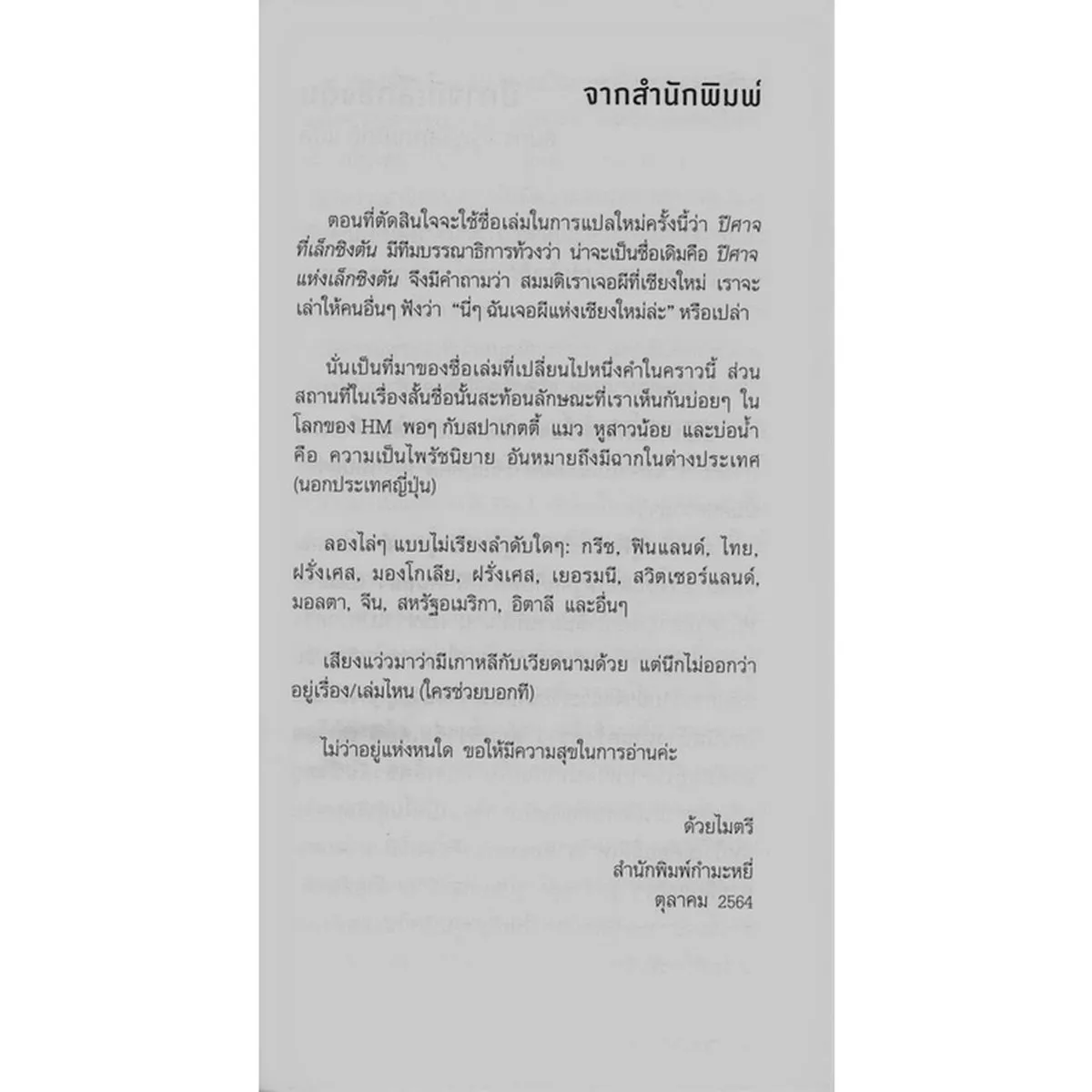 ตอนที่ตัดสินใจจะใช้ชื่อเล่มในการแปลใหม่ครั้งนี้ว่า ปีศาจที่เล็กซิงตัน มีทีมบรรณธิการท้วงว่า ปีศาจแห่งเล็กซิงตัน จึงมีคำถามว่า สมมติเราเจอผีที่เชียงใหม่ เราจะเล่าให้คนอื่นๆฟังว่า “นี่ๆ ฉันเจอผีแห่งเชียงใหม่ล่ะ” หรือเปล่า