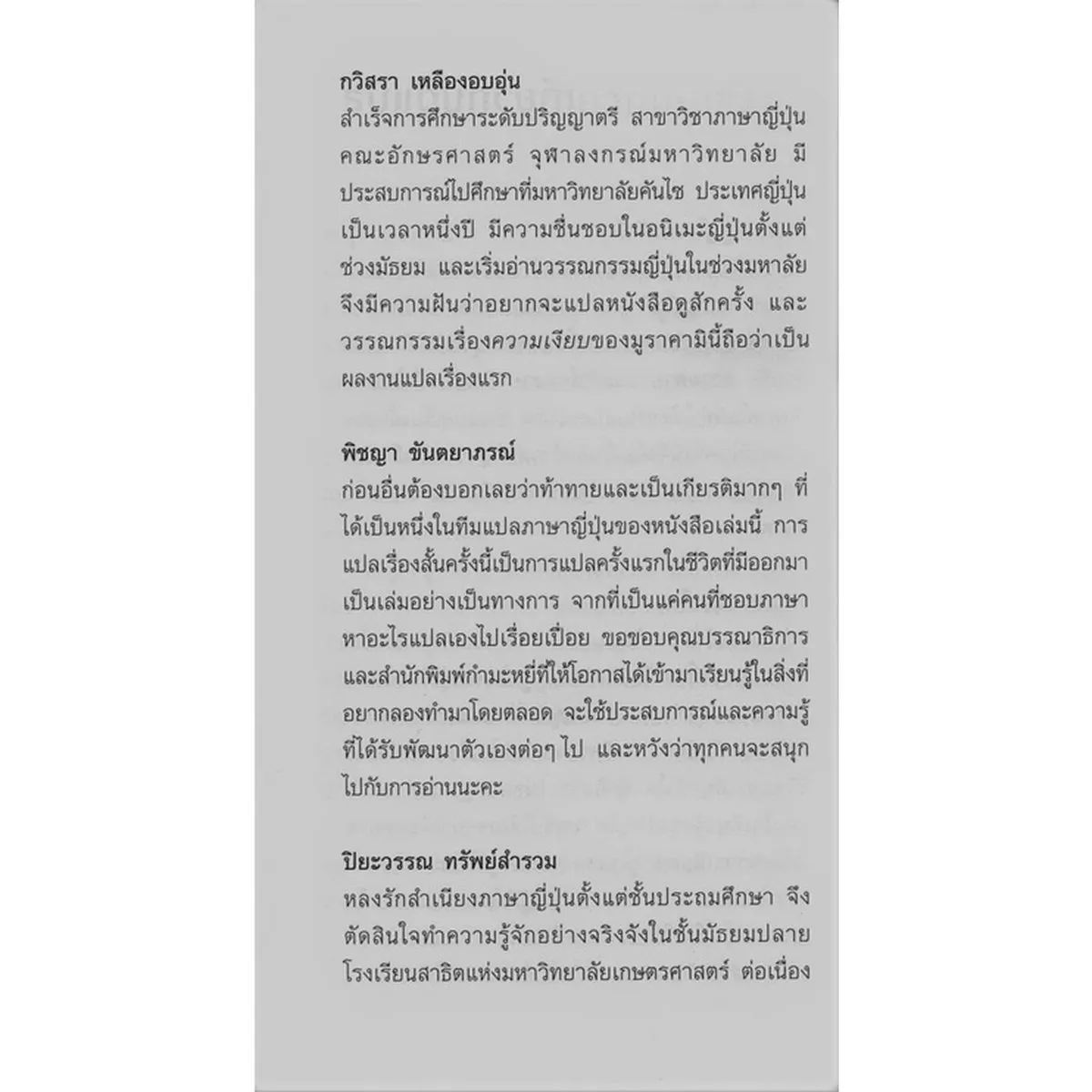 ผู้แปล : ธนกร จรูญโสภณศักดิ์, รัตนพร เฮียวโดะ, กวิสรา เหลืองอบอุ่น, พิชญา ขันตยาภรณ์, ปิยะวรรณ ทรัพย์สำรวม, พธูวดี บาลทิพย์, แพรวพฤกษ์ จิตสกุลชัยเดช