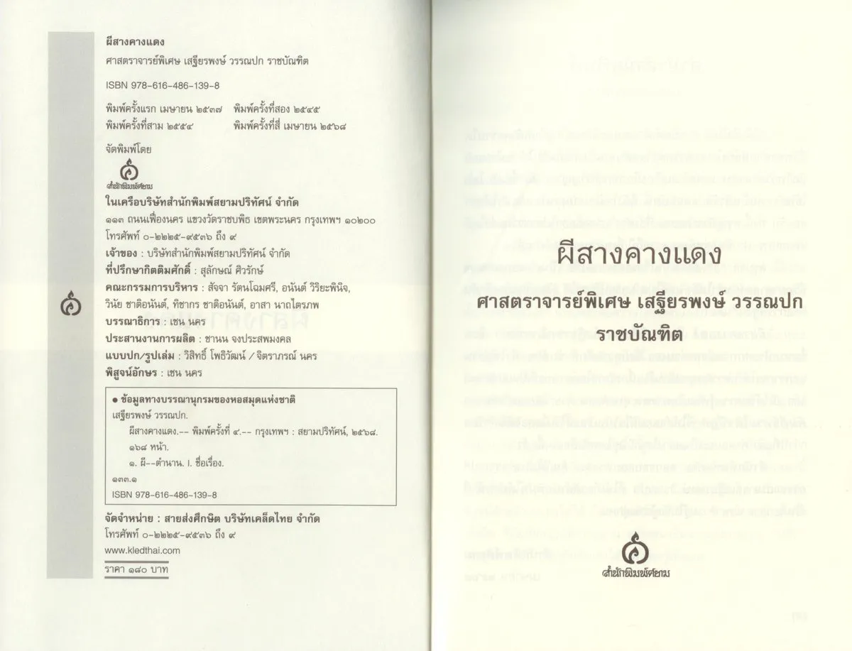ผีสางคางแดง : ศาสตราจารย์พิเศษ เสฐียรพงษ์ วรรณปก ราชบัณฑิต (พิมพ์ครั้งที่ 4)