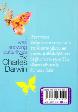 “ผีเสื้อโปรยปราย”คือหนังสือที่รวบรวมข้อมูลที่ดาร์วินรวบรวมขณะที่เดินทางไปสำรวจร่วมกับบีเกิล หเขาใช้ความพยายามอย่างหนักแม้ว่าในขณะนั้น ตัวเขาเองจะป่วยเสมอมา เขาก็ยังไม่มีทีท่าว่าจะล้มเลิกการค้นคว้า จนทำให้เขาได้พบเรื่องราวแปลกๆมากมาย รวมไปถึงสภาพภูมิประเทศและชนเผาที่ยังไม่ได้สำรวจ ซึ่งทั้งหมดมีอยู่ในรายงานชิ้นที่เขา ได้ไปสำรวจกับเดอะ บีเกิลนั้นเอง