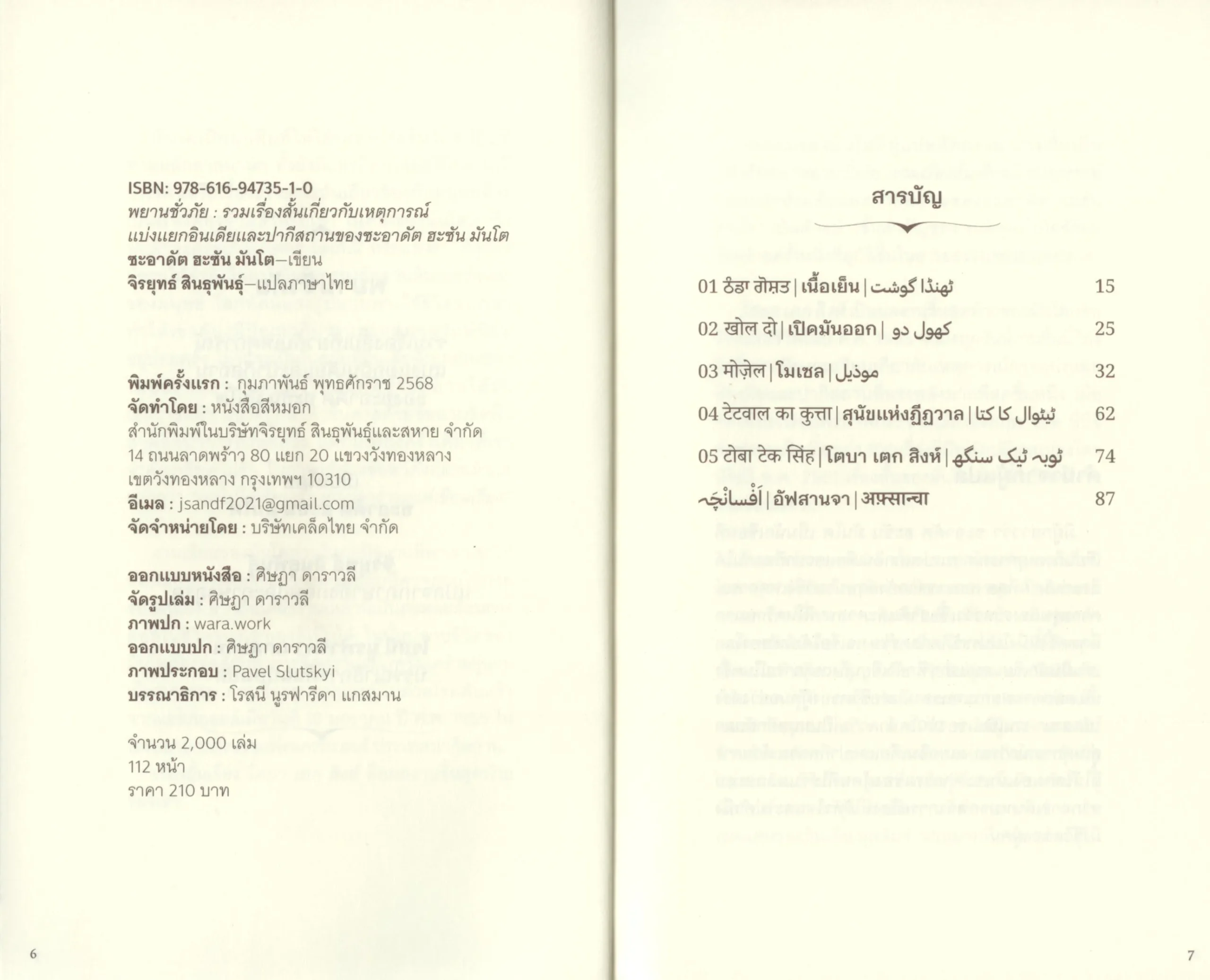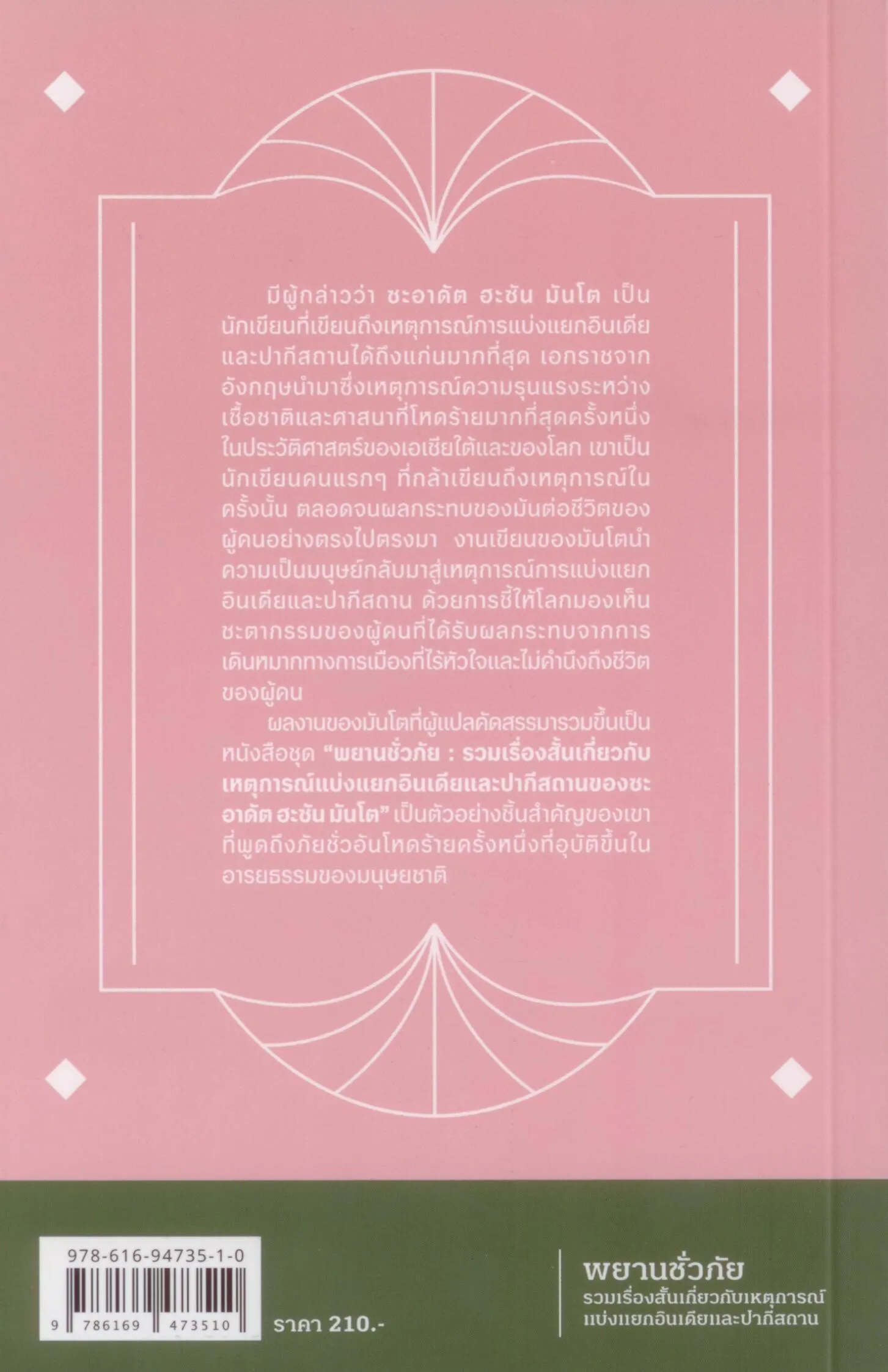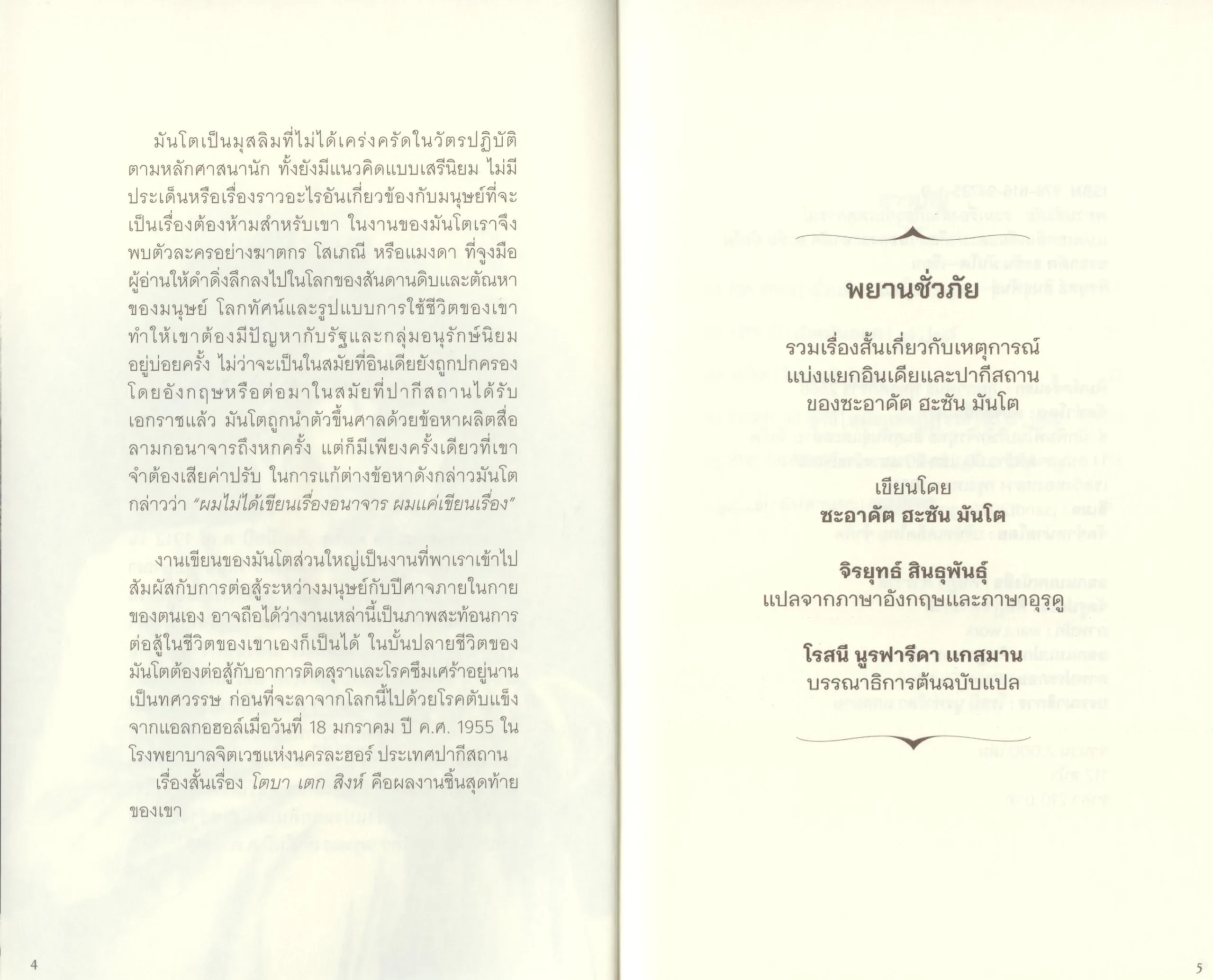 พยานชั่วภัย : รวม 5 เรื่องสั้นเกี่ยวกับเหตุการณ์แบ่งแยกอินเดียและปากีสถานของซะอาดัต ฮะซัน มันโต