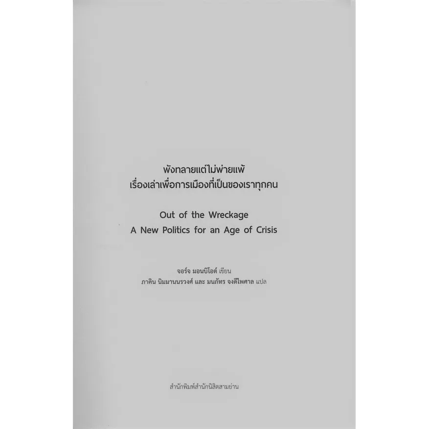หนังสือ พังทลายแต่ไม่พ่ายแพ้ : เรื่องเล่าเพื่อการเมืองที่เป็นของเราทุกคน Out of the Wreckage: A New Politics for an Age of Crisis