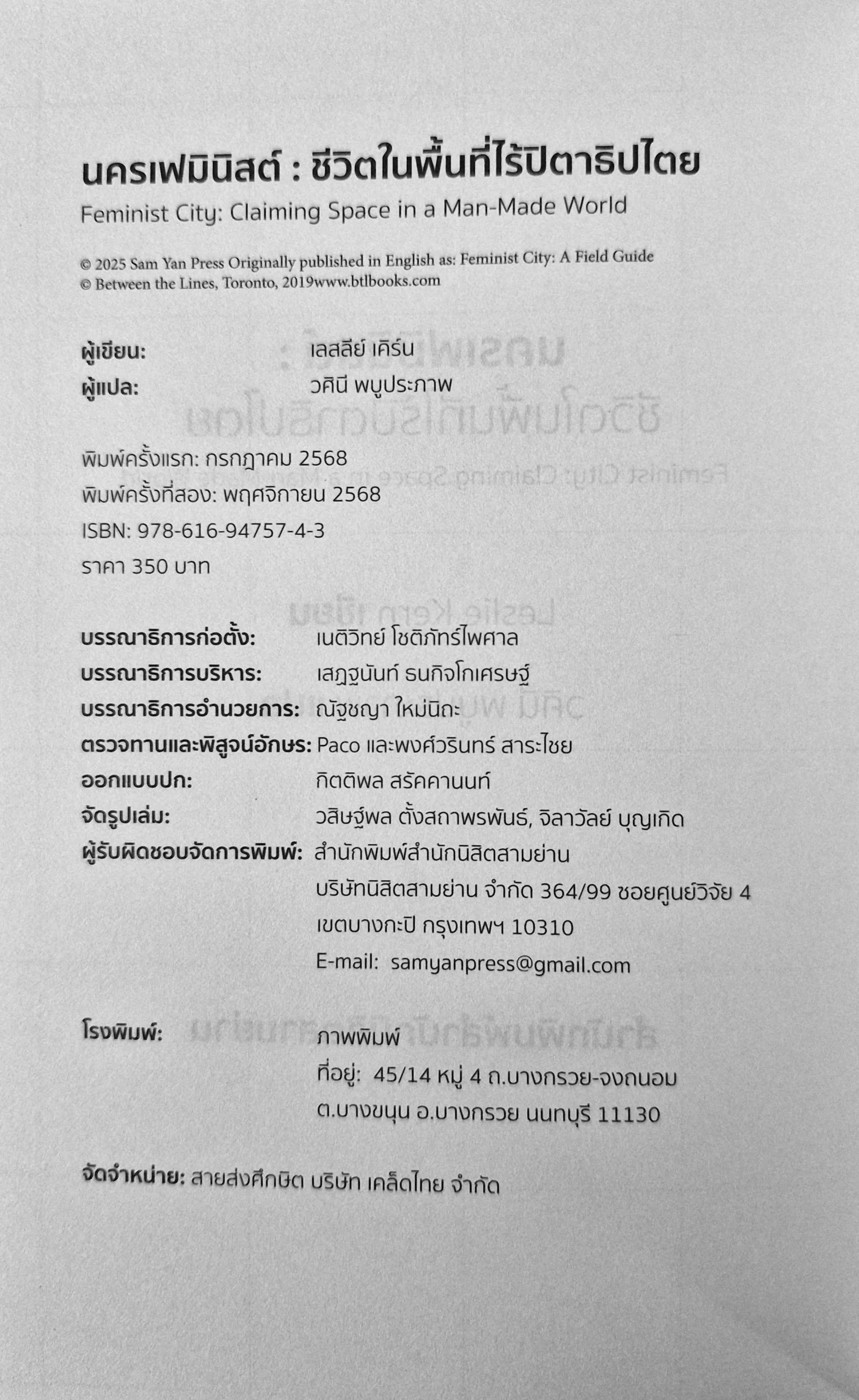 [พิมพ์ครั้งที่ 2] Feminist City นครเฟมินิสต์ : ชีวิตในพื้นที่ไร้ปิตาธิปไตย – Leslie Kern / วศินี พบูประภาพ