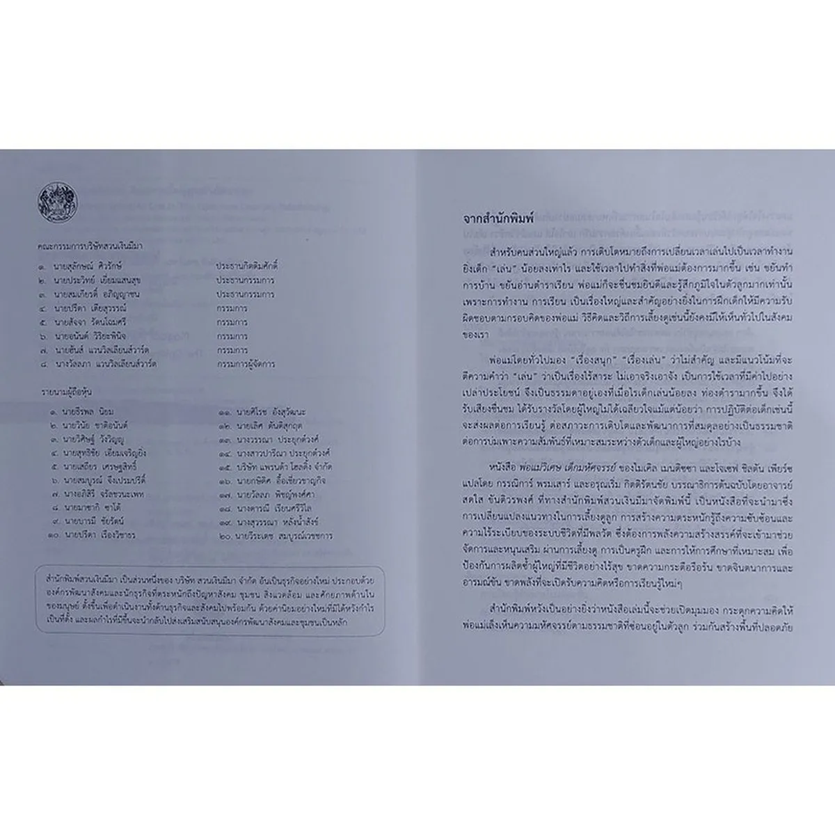 “พ่อแม่วิเศษ เด็กมหัศจรรย์” เล่มนี้ ได้นำหลักการอันสร้างสรรค์ของความซับซ้อนและความไร้ระเบียบ มาใช้กับระบบชีวิตที่มีพลวัต ซึ่งเราเรียกว่าการเลี้ยงดูลูก การเป็นครูฝึก และการให้การศึกษา เด็กและพ่อแม่เหมือนกระจกที่สะท้อนกันและกัน แต่ละคนส่งผลต่อความอยู่ดีมีสุขของอีกฝ่าย สภาวะขจิตใจของพ่อและแม่และความสัมพันธ์เชิงอารมณ์กับลูก มีความสำคัญกว่ามาตรฐานการครองชีพและเสื้อผ้าแบรนด์เนมมากมายนัก เด็กที่ได้รับการดูแลเอาใจใส่ดี มีความั่นคง จะมีภูมิคุ้มกันจากการสอดแทรกเข้ามาของความรุนแรงหรือศัตรูจากโลกภายนอก จะเติบโตเป็นผู้ใหญ่ที่เฉลียวฉลาดและมีความสุข สามารถรับมือกับสภาพความเป็นไปของโลกได้ ขณะเดียวกันก็ทำให้พ่อแม่มีความสุขไปด้วย