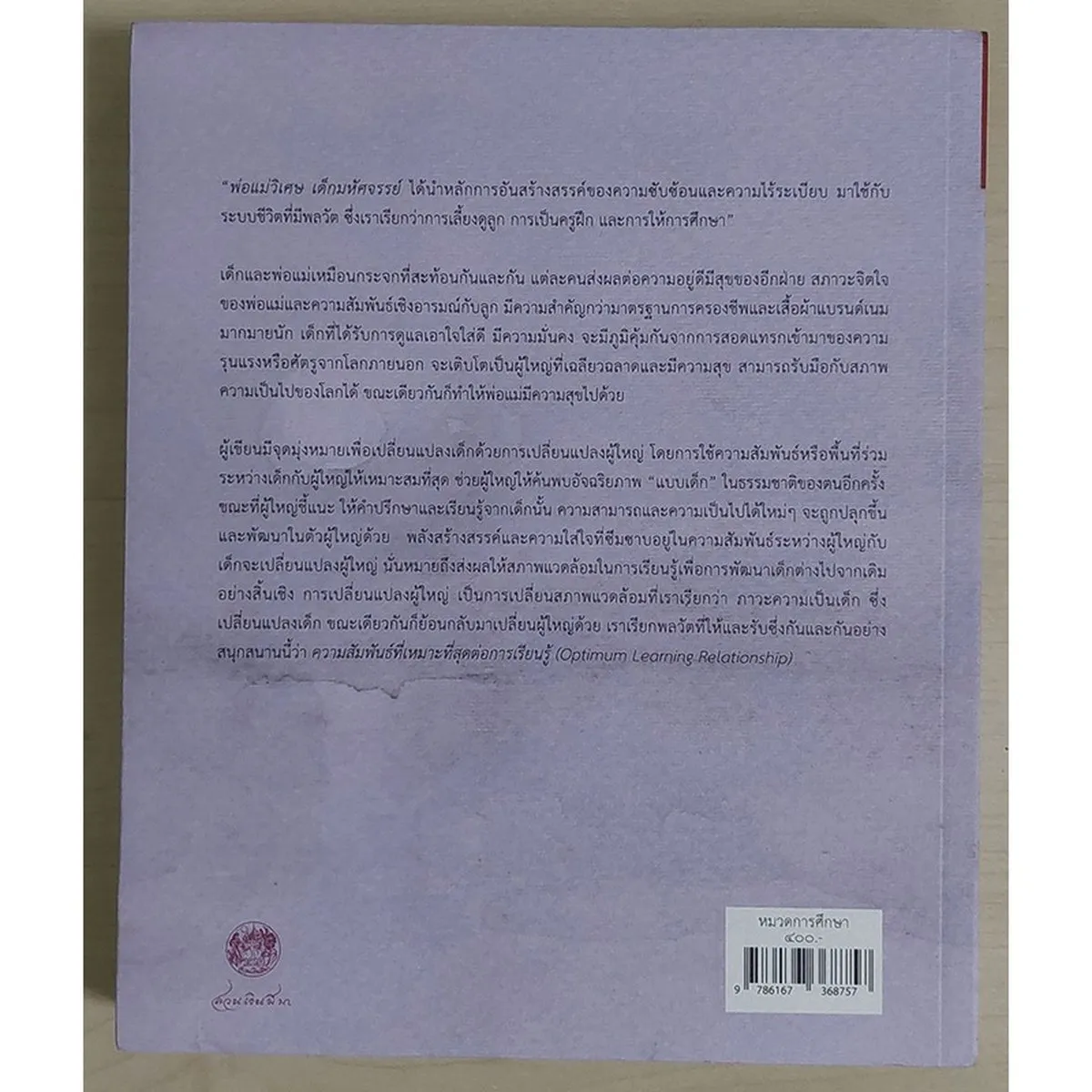 ซึ่งผู้เขียนมีจุดมุ่งหมายเพื่อเปลี่ยนแปลงเด็กด้วยการเปลี่ยนแปลงผู้ใหญ่ โดยการใช้ความสัมพันธ์หรือพื้นที่ร่วมระหว่างเด็กกับผู้ใหญ่ให้เหมาะสมที่สุด ช่วยผู้ใหญ่ให้ค้นพบอัจฉริยภาพ “แบบเด็ก” ในธรรมชาติของตนอีกครั้ง ขณะที่ผู้ใหญ่ชี้แนะ ให้คำปรึกษาและเรียนรู้จากเด็กนั้น ความสามารถและความเป็นไปได้ใหม่ ๆ จะถูกปลุกขึ้นและพัฒนาในตัวผู้ใหญ่ นั่นหมายถึงส่งผลให้สภาพแวดล้อมในการเรียนรู้เพื่อการพัฒนาเด็กต่างไปจากเดิมอย่างสิ้นเชิง การเปลี่ยนแปลงผู้ใหญ่ เป็นการเปลี่ยนสภาพแวดล้อมที่เราเรียกว่า ภาวะความเป็นเด็ก ซึ่งเปลี่ยนแปลงเด็ก ขณะเดียวกันย้อนกลับมาเปลี่ยนผู้ใหญ่ด้วย เราเรียกพลวัตที่ให้และรับซึ่งกันและกันอย่างสนุกสนานนี้ว่า “ความสัมพันธ์ที่เหมาะที่สุดต่อการเรียนรู้ (Optimum Learning Relationship)”