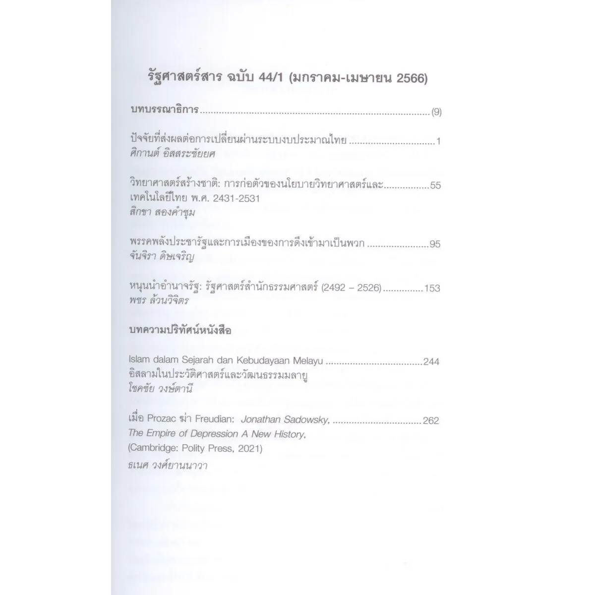 รัฐศาสตร์สาร ฉบับ 44/1 (มกราคม – เมษายน 2566)