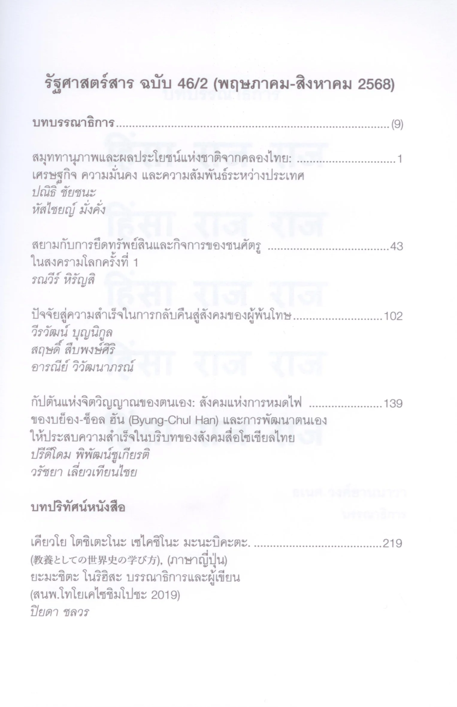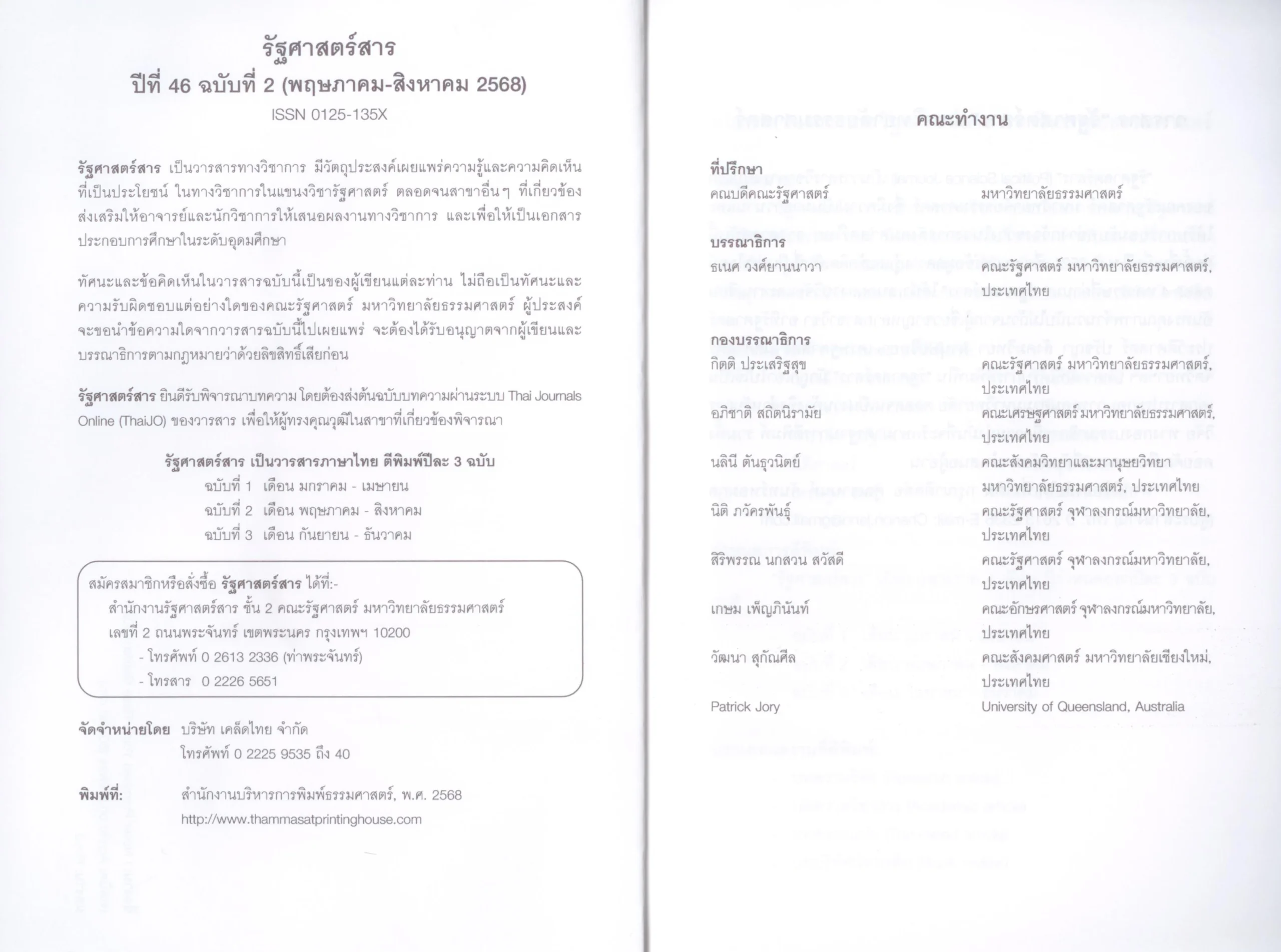 รัฐศาสตร์สาร ปีที่ 46 ฉบับที่ 2 (พฤษภาคม-สิงหาคม 2568)