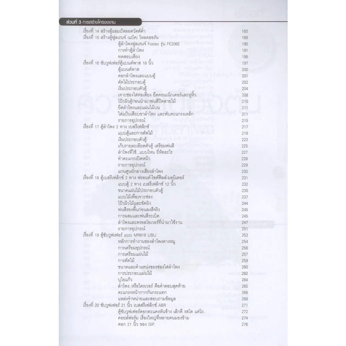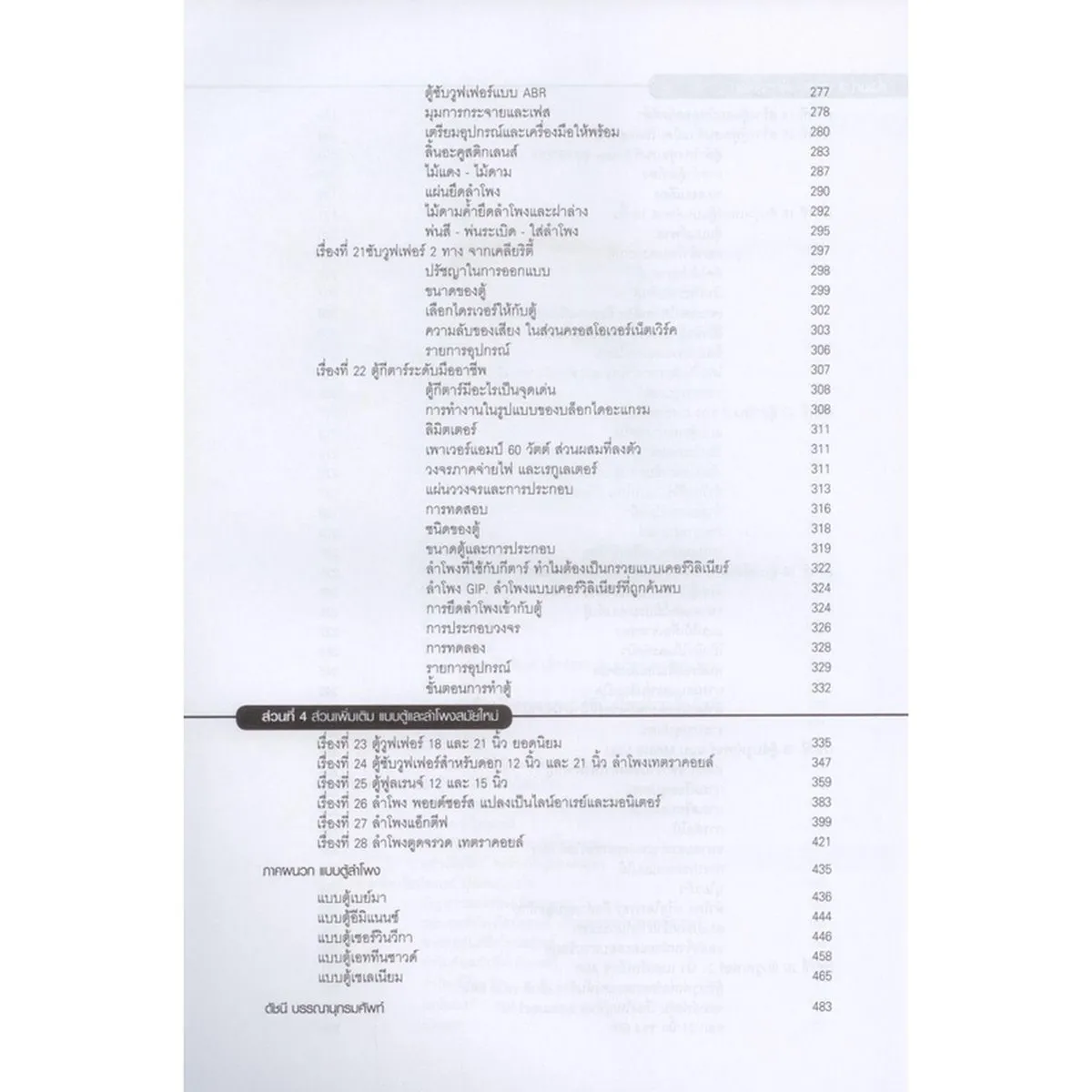 สร้างลำโพงแอมป์หลอดวัตต์ต่ำ, สร้างงตู้ฟูลเรนจ์-โหลดฮอร์น, ตู้แบนด์พาส 18 นิ้ว, เบสรีเฟล็กซ์ 2 ทาง, เบสรีเฟล็กซ์ฟรอนท์-โซด์-มอนิเตอร์, ซับวูฟเฟอร์ 10 – 21 นิ้ว, ตู้กีตาร์, ตู้พอยต์ซอร์ส (PS-Series), ตู้ลำโพงแอ็กตีป ฯลฯ