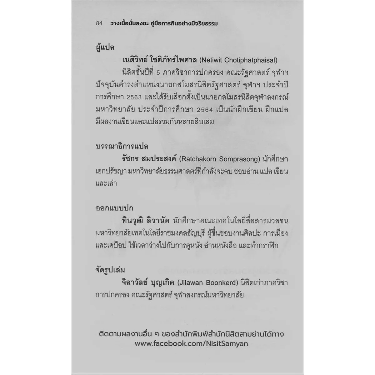 สำนักพิมพ์ : สำนักนิสิตสามย่าน ภายใต้มูลนิธิเสฐียรโกเศศขนาคะประทีป