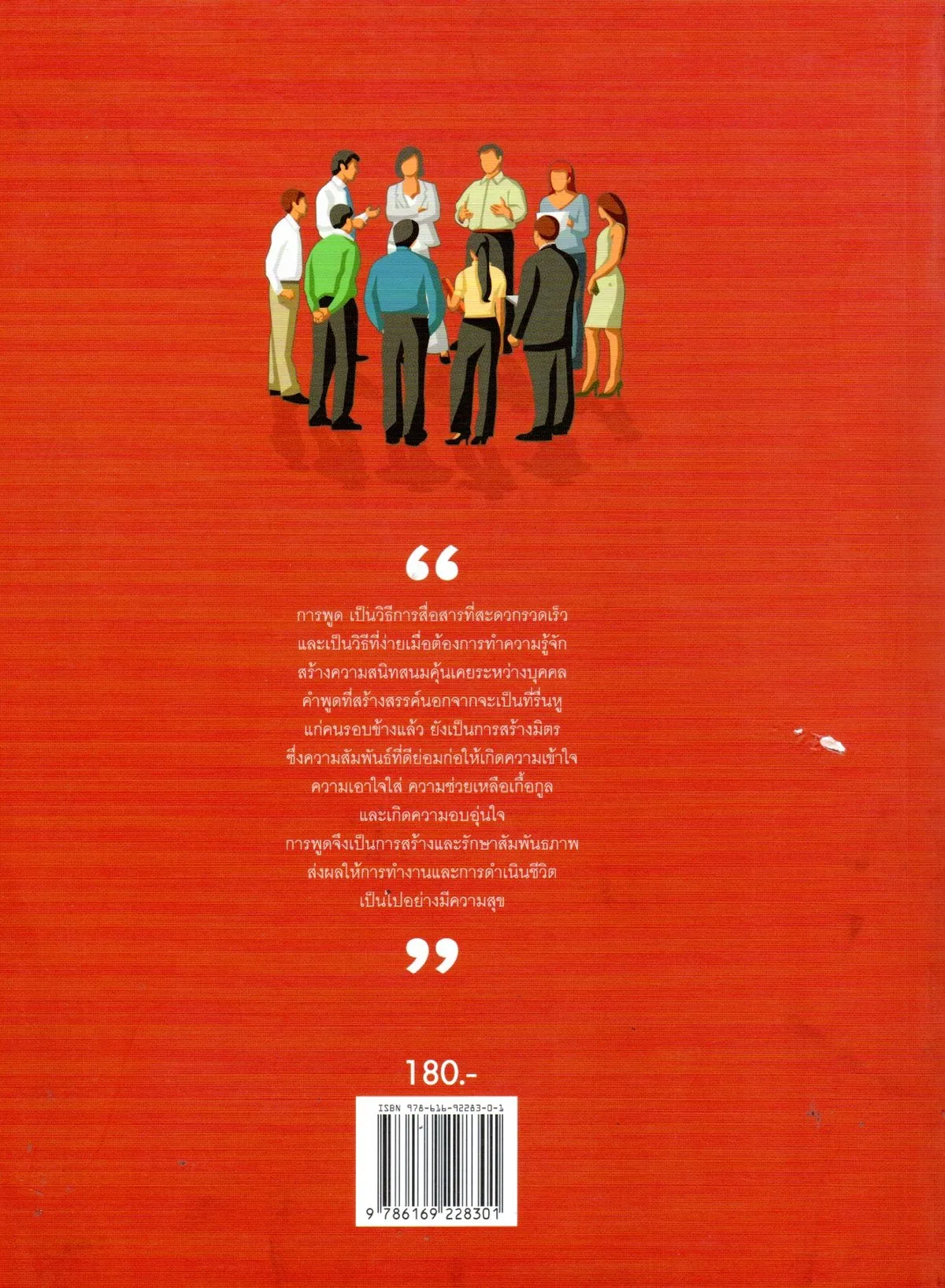 “การพูด เป็นวิธีการสื่อสารที่สะดวกรวดเร็วและเป็นวิธีที่ง่ายเมื่อต้องการทำความรู้จักสร้างความสนิทสนมคุ้นเคยระหว่างบุคคลคำพูดที่สร้างสรรค์นอกจากจะเป็นที่รื่นหูแก่คนรอบข้างแล้ว ยังเป็นการสร้างมิตรซึ่งความสัมพันธ์ที่ดีย่อมก่อให้เกิดความเข้าใจ ความเอาใจใส่ ความช่วยเหลือเกื้อกูลและเกิดความอบอุ่นใจ การพูดจึงเป็นการสร้างและรักษาสัมพันธภาพส่งผลให้การทำงานและการดำเนินชีวิตเป็นไปอย่างมีความสุข”