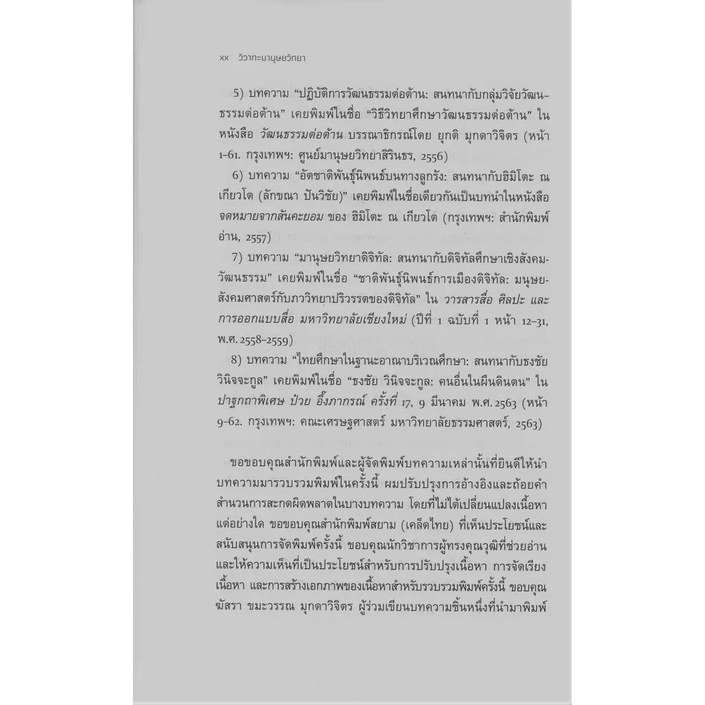 หนังสือเล่มนี้เป็นเสมือนส่วนหนึ่งของอัตชีวประวัติทางทฤษฎีและวิธีวิทยาทางมานุษยวิทยาของผม นับตั้งแต่ที่ผมเริ่มรู้จักวิชามานุษวิทยาในปลายทศวรรษ 1980 จนศึกษาจบปริญญาเอกมานุษวิทยาในปลายทศวรรษ 2000 ถึงปัจจุบันก็ผ่านมากว่า 30 กว่าปี หลังจบปริญญาโท ที่มหาวิทยาลัยธรรมศาสตร์ผมสร้างบทสนทนาทั้งวิพากษ์และทำความเข้าใจงานเขียนทางวิชาการของนักวิชาการไทย ผ่านแนวความคิดจากมานุษวิทยาสากลมาอย่างต่อเนื่อง