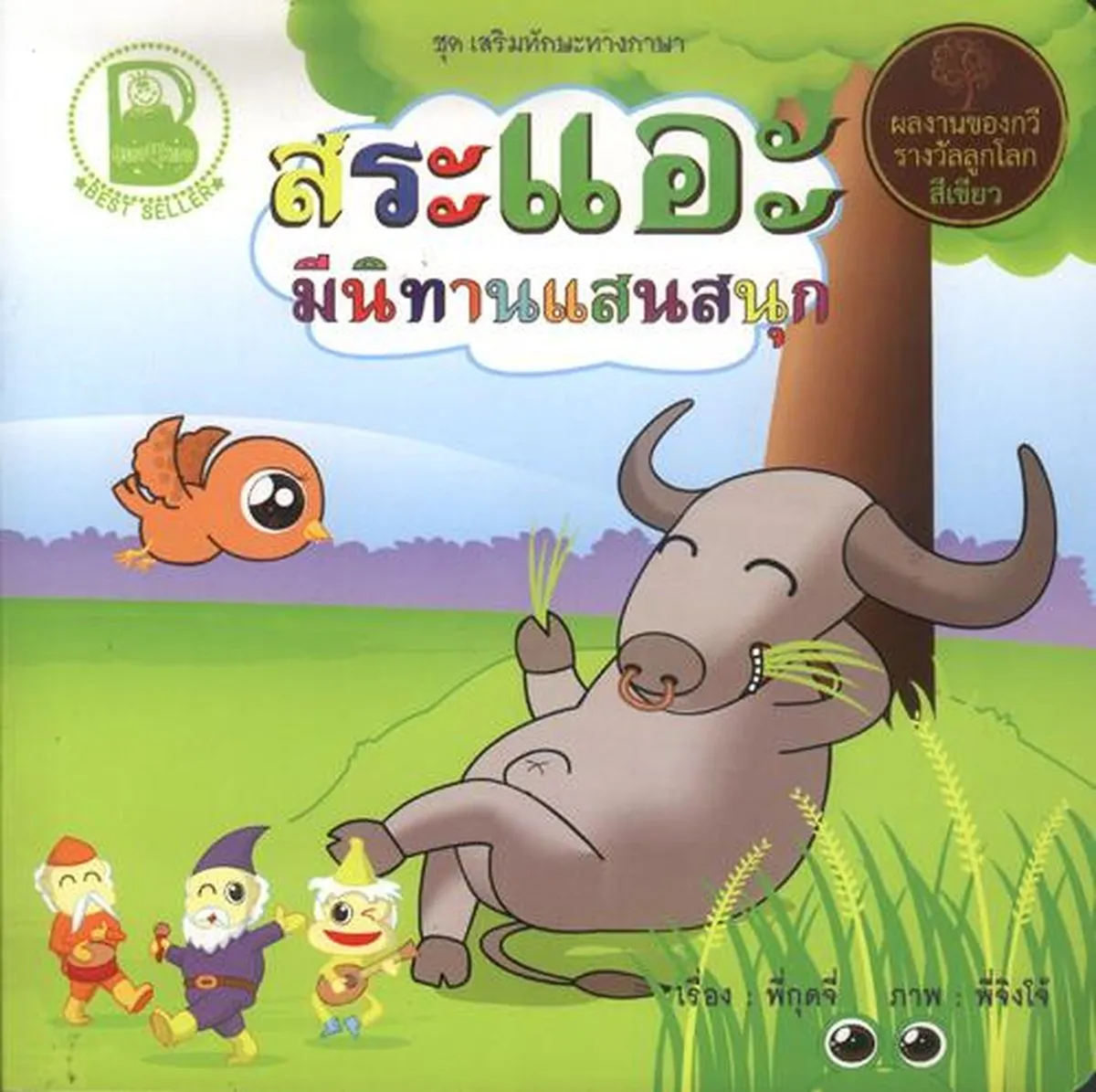 “ทำศัพท์อยากให้กลายเป็นศัพท์หมูให้เด็กๆ เรียนรู้ตั้งแต่เริ่มต้น” ฝึกให้เด็กอ่านได้ สะกดถูกต้อง จากผลงานของ “พี่กุดจี่” ในชุด “เสริมทักษะทางภาษา (สระมีนิทานแสนสนุก)” สระอะ,สระอา,สระอี,สระอึ,สระอือ,สระอุ,สระอู,สระแอะ,สระแอ,สระโอะ,สระโอ ฯลฯ…. (เนื้อเรื่องบางตอน) ฟ้าร้องโครมคราม ฝนตกตามเปาะแปะ กบร้องอ๊บอ๊บ พื้นดินเฉอะแฉะ หญ้าเขียวเขียว ควายเคี้ยวควายแทะ ข้างข้างควายดำ ฝนพรำใส่แกะ…ฯลฯ….