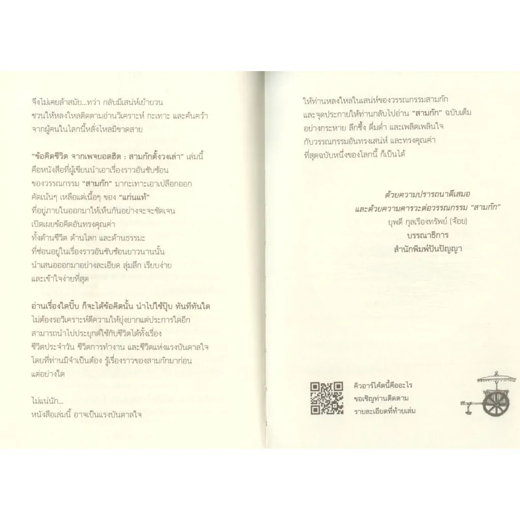 เมื่อพิมพ์ครั้งแรก ปี พ.ศ. 2560 ใช้ชื่อหนังสือว่า “ข้อคิดชีวิต จากเพจยอดฮิต : สามก๊ก ตั้งวงเล่า”