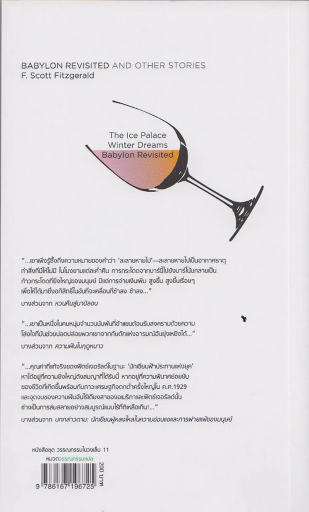 “…คุณค่าที่แท้จริงของฟิตซ์เจอรัลด์ในฐานะ ‘นักเขียนฟ้าประทานแห่งยุค’ หาได้อยู่ที่ความยิ่งใหญ่ดังสมญาที่ได้รับนี้ หากอยู่ที่ความพินาศย่อยยับของชีวิตที่เกิดขึ้นพร้อมกับภาวะเศรษฐกิจตกต่ำครั้งใหญ่ใน ค.ศ. 1929 และจุดจบของความฝันอันไร้เดียงสาของอเมริกาและฟิตซ์เจอรัลด์นั้นช่างเป็นการล่มสลายอย่างสมบูรณ์แบบไร้ที่ติเหลือเกิน!…”
