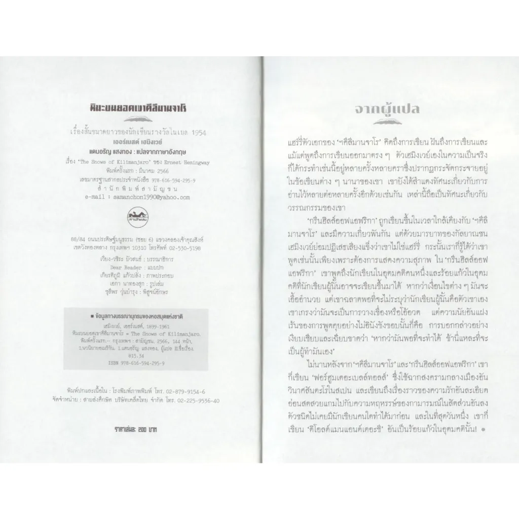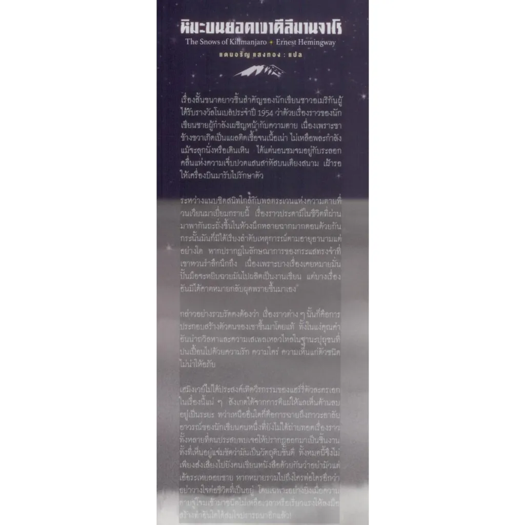 หิมะบนยอดเขาคีลีมานจาโร เรื่องนี้ถูกจัดเป็นเรื่องแต่งจำพวกประวัติชีวิตศิลปิน ประเภทเดียวกันกับ ‘A Portrait of the Artist as a Young Man’ ของเจมส์ จอยซ์ นักเขียนชาวไอริช หรือ ‘Tonio Kröger’ และ‘Death in Venice’ ของโทมัส มานน์ นักเขียนเยอรมัน หรือ‘The Diary of Vaslav Nijinsky’ของวาร์สลาฟ นิจินสกี้ นักบัลเลต์ชาวรัสเซียนั่นเอง
