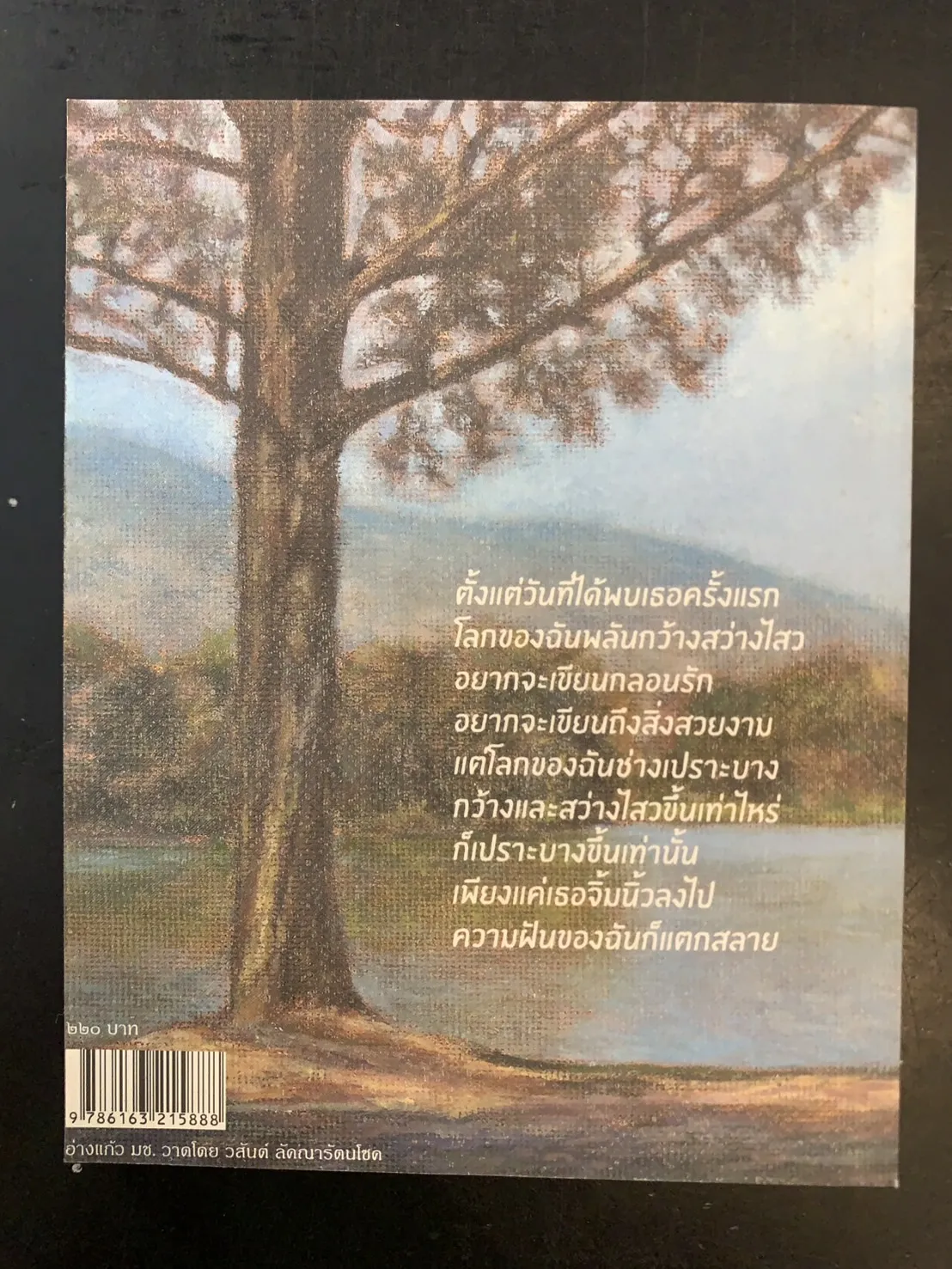 ทว่าผมเป็นเพียงคนเริ่มต้นเขียนหนังสือ อย่างตั้งใจที่สุด ก็ได้แต่วาดภาพในใจออกมาให้ได้บรรยากาศใกล้เคียงกับที่นึกฝันไว้ โดยใช้อักษรแทนสีน้ำมัน ใช้ปากกาแทนเกรียง ใช้แผ่นกระดาษแทนเฟรมผ้าใบ ภาพวาดนั้นไม่อาจปรากฏแก่สายตา คุณจะมองเห็นก็โดยการอ่านหากคุณจะได้อ่านมันจบลง หรือเพียงบางบทบางตอน ภาพจากตัวหนังสือและถ้อยคำยาวเหยียด บรรยายฉากและชีวิตในห้วงเวลาหนึ่ง….ฯลฯ