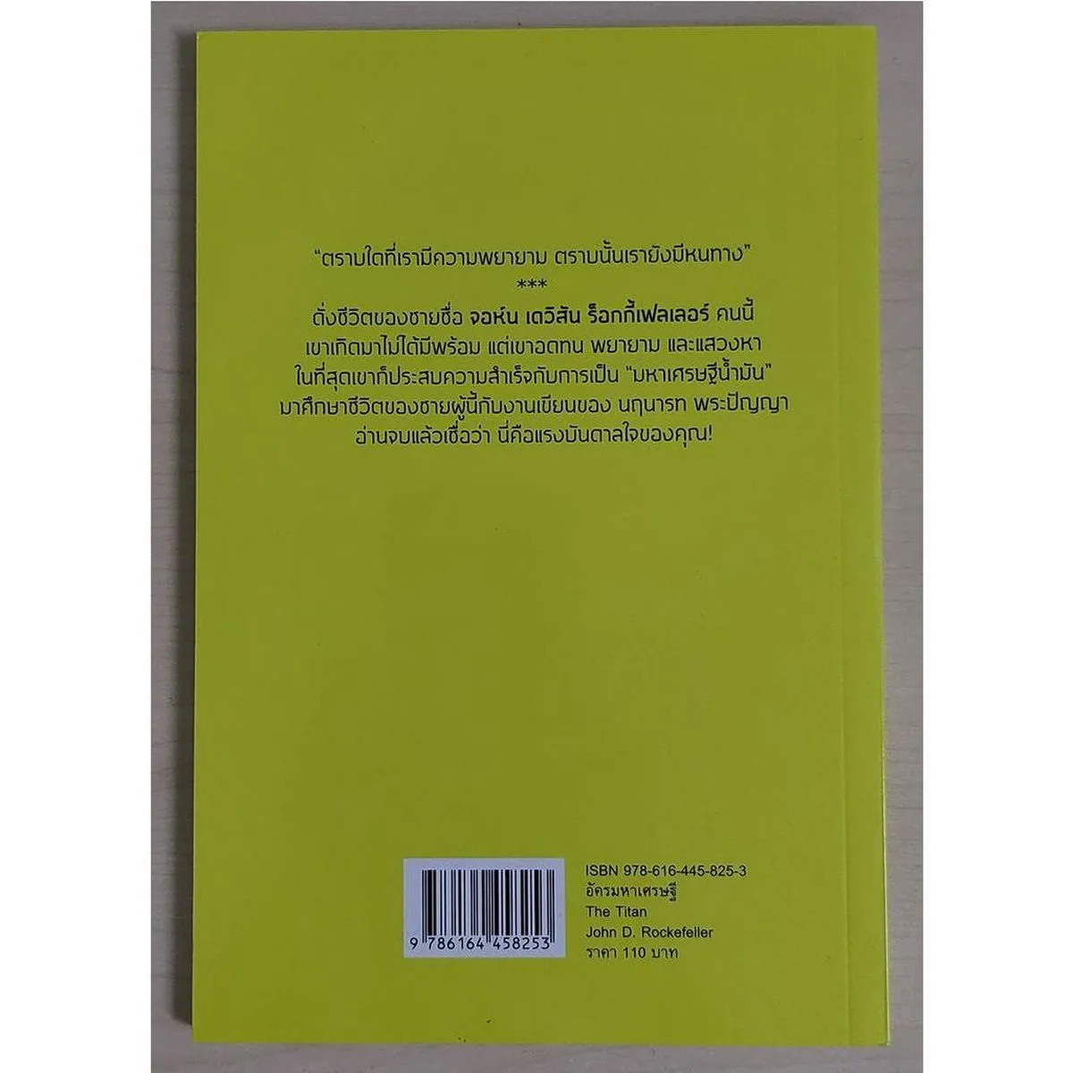 “ตราบใดที่เรามีความพยายาม ตราบนั้นเรายังมีหนทาง” ดั่งชีวิตของชายชื่อ “จอห์น เดวิสัน ร็อกกี้เฟลเลอร์” คนนี้เขาเกิดมาไม่ได้มีพร้อม แต่เขาอดทน พยายาม และแสวงหา ในที่สุดเขาก็ประสบความสำเร็จกับการเป็น “มหาเศรษฐีน้ำมัน” มาศึกษาชีวิตของชายผู้นี้กับงานเขียนของ “นฤนารท พระปัญญา” อ่านจบแล้วเชื่อว่า นี่คือแรงบันดาลใจของคุณ!