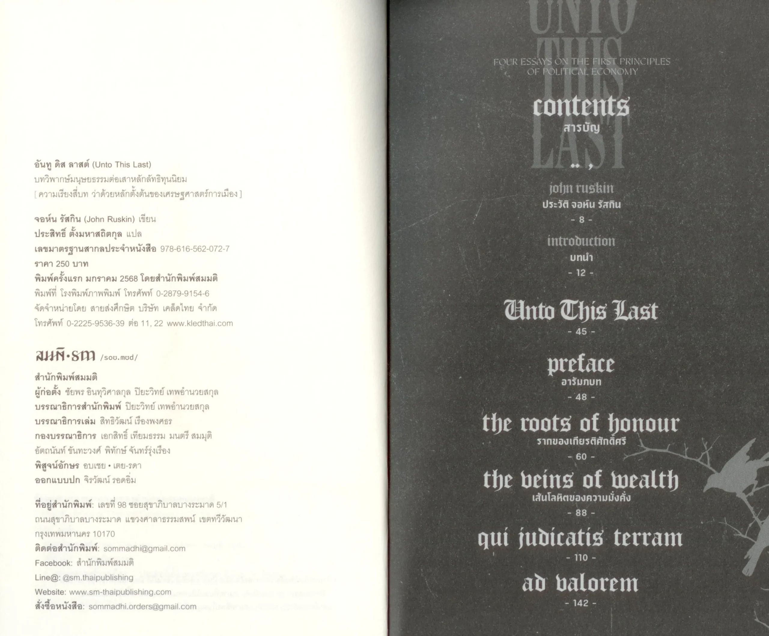 ผลงานของจอห์น รัสกิน(John Ruskin) นักวิจารณ์ทางด้านศิลปะ สถาปัตยกรรม และสังคม ที่ยิ่งใหญ่ที่สุดคนหนึ่งแห่งศตวรรษที่ 19 หนังสือเล่มนี้วิพากษ์เสาหลักลัทธิทุนนิยมของ จอห์น สจ๊วต มิลล์ (John Stuart Mill) คนที่ให้ความสำคัญคำว่า มนุษย์เศรษฐกิจ รัสกินไม่เชื่อว่าสังคมส่วนรวมจะได้ประโยชน์จากความโลภและวัตถุนิยมของปัจเจกบุคคลที่เห็นแก่ได้ เพราะเขาเชื่อว่ามนุษย์มี คุณธรรม เป็นรากฐาน
