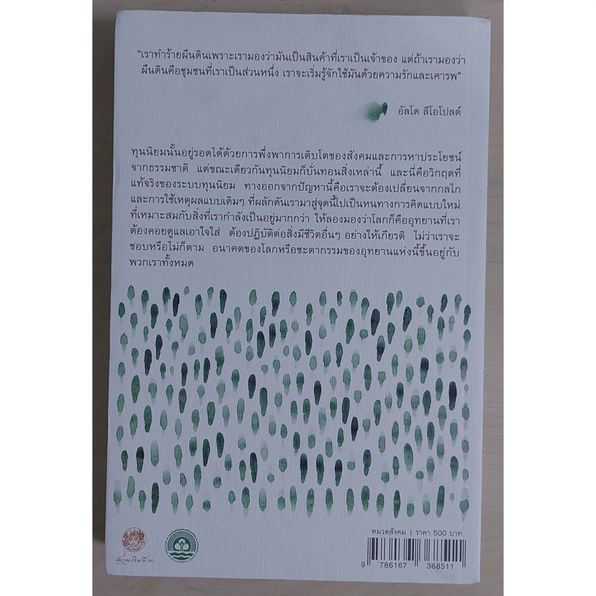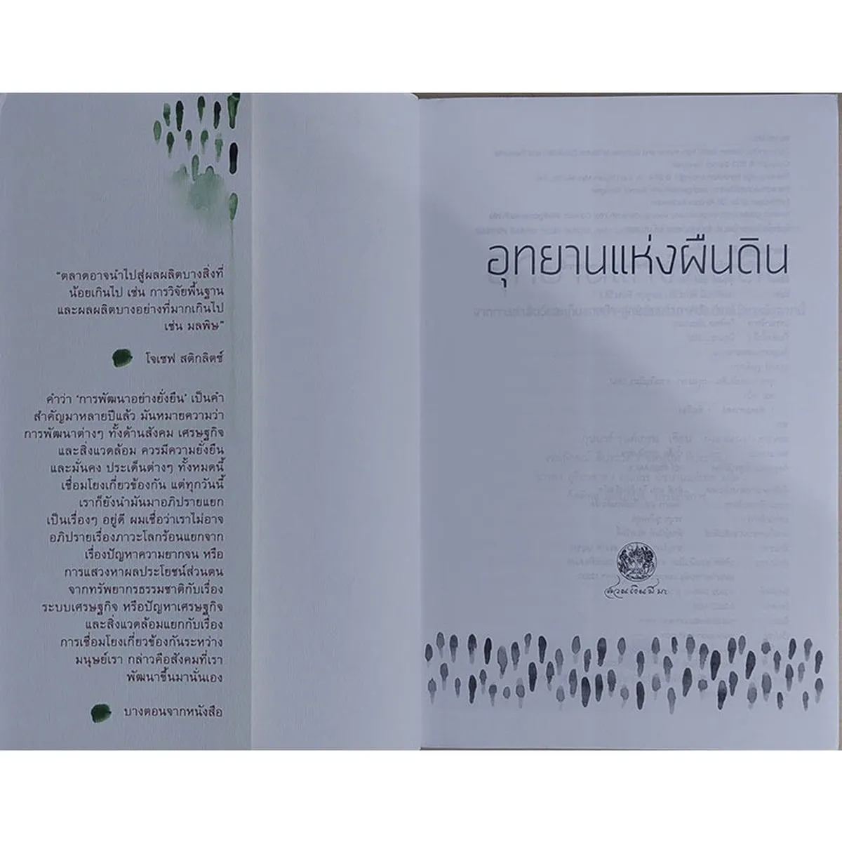 “อุทยานแห่งผืนดิน : จากการล่าสัตว์และเก็บของป่า สู่ทุนนิยมโลกาภิวัตน์และโลกหลังจากนี้” เกิดขึ้นจากประสบการณ์อันยาวนานของ “กุนนาร์ รุนด์เกรน” นักธรรมชาติวิทยาผู้บุกเบิกแวดวงเกษตรอินทรีย์ในระดับสากล ในฐานนะเกษตรกรที่ลงมือทำเกษตรแบบอินทรีย์ด้วยตนเอง และในบทบาทของนักคิดเชิงวิพากษ์ที่คงเส้นคงวากับประเด็นเรื่องเกษตรกรรม จึงนำพาให้เขาได้เดินทางไปเห็นสภาพการณ์ด้านการเกษตรและการผลิตอาหารในที่ต่างๆ กว่าหนึ่งร้อยประเทศ ได้พบปะผู้คนในระดับต่างๆ ตั้งแต่ชาวนาเกษตรกรรม ผู้ประกอบการจนถึงผู้นำประเทศ แต่ไม่ว่าจะไปในที่แห่งใด สองเท้าของเขาก็ยังย่ำไปบนพื้นดินและสองมือสัมผัสกับการทำสวนเสมอ เขายังคงใช้ชีวิตใคร่ครวญถึงคำถามอันเป็นสาระเพื่อการเปลี่ยนแปลงโลกในดีขึ้น และการตอบสนองความท้าทายแห่งยุคสมัยเรา